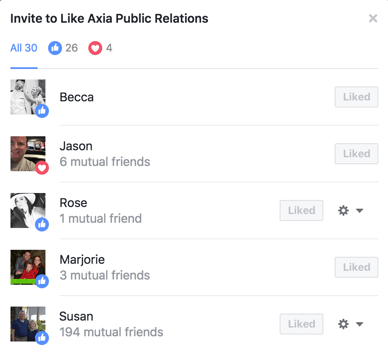 Simply click on the number of likes under any post on your page. You get a list of every user who liked the post, and, on the right of each user’s name, you can see a button that shows if the user already liked your page. If a user hasn’t done so yet, you can invite him or her by clicking the “Invite” button.