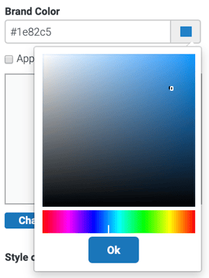 To select a brand color, use the color picker located at Dashboard > Funnel > Setup > Branding & Design > Brand Color.