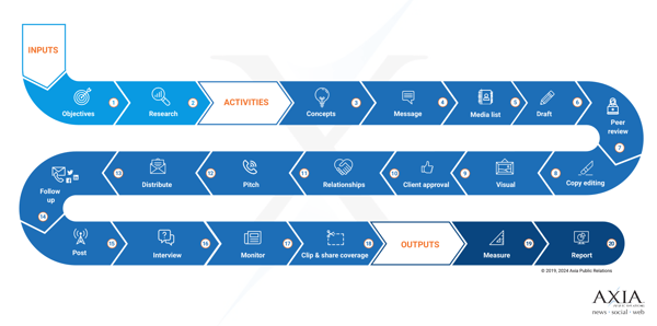 Axia Public Relations uses visual processes to show our clients exactly how we deliver our services and results. It’s integrated into our agency’s culture and understood by all members of the team.