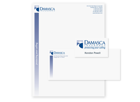 When Kenston Powell purchased the Maxwell Agency, it was a well-respected insurance agency specializing in religious institutions. Powell felt the name just wasn’t right for future growth prospects. In 2006, we embarked on yet another challenge for the AXIA “Onoma” rebranding process. After several successive rounds, we selected Damasca — derived from the Biblical site where Saul of Tarsus was transformed into St. Paul. AXIA went on to design a full corporate identity package for Damasca, including a logo, letterhead, note cards and other elements. AXIA also negotiated and secured rights to the damasca.com domain.