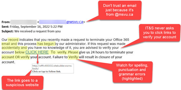 Attackers will use a targeting approach, which means these emails will contain specifics about you, such as your name, title, hometown, or bank information, which is intended to add supposed credibility to the email. This works to the attackers’ benefit because it makes the email seem real.