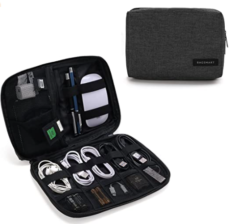 Organizing clothes is just the start. If the PR pros in your life are traveling, their tech is coming with them. Phone and laptop charges with backups, a computer mouse, batteries, and flash drives can all be kept safe in this BAGSMART Electronic Organizer. Buy now.