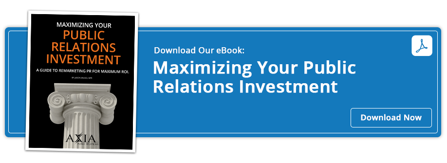 Whether you’ve never worked with a PR firm, have had an imperfect experience or are just looking to expand your PR initiatives, give Axia Public Relations a call. We will show you that even though PR isn’t magic, it can still achieve miraculous results for your company. To learn more, download our e-book Maximizing Your Public Relations Investment today.