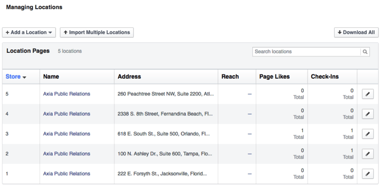 Many companies that have more than one location may find it difficult deciding which address to associate with their Facebook page. Facebook used to require a separate page for each location; but recently, it realized the demand for one page that could display all of a company’s locations and now offers that option to users.