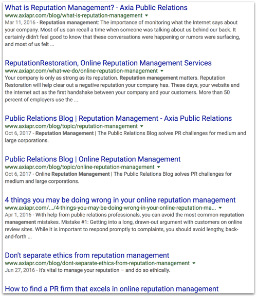 By adding the “site:” and the company’s domain name, Google will only display results for that domain.