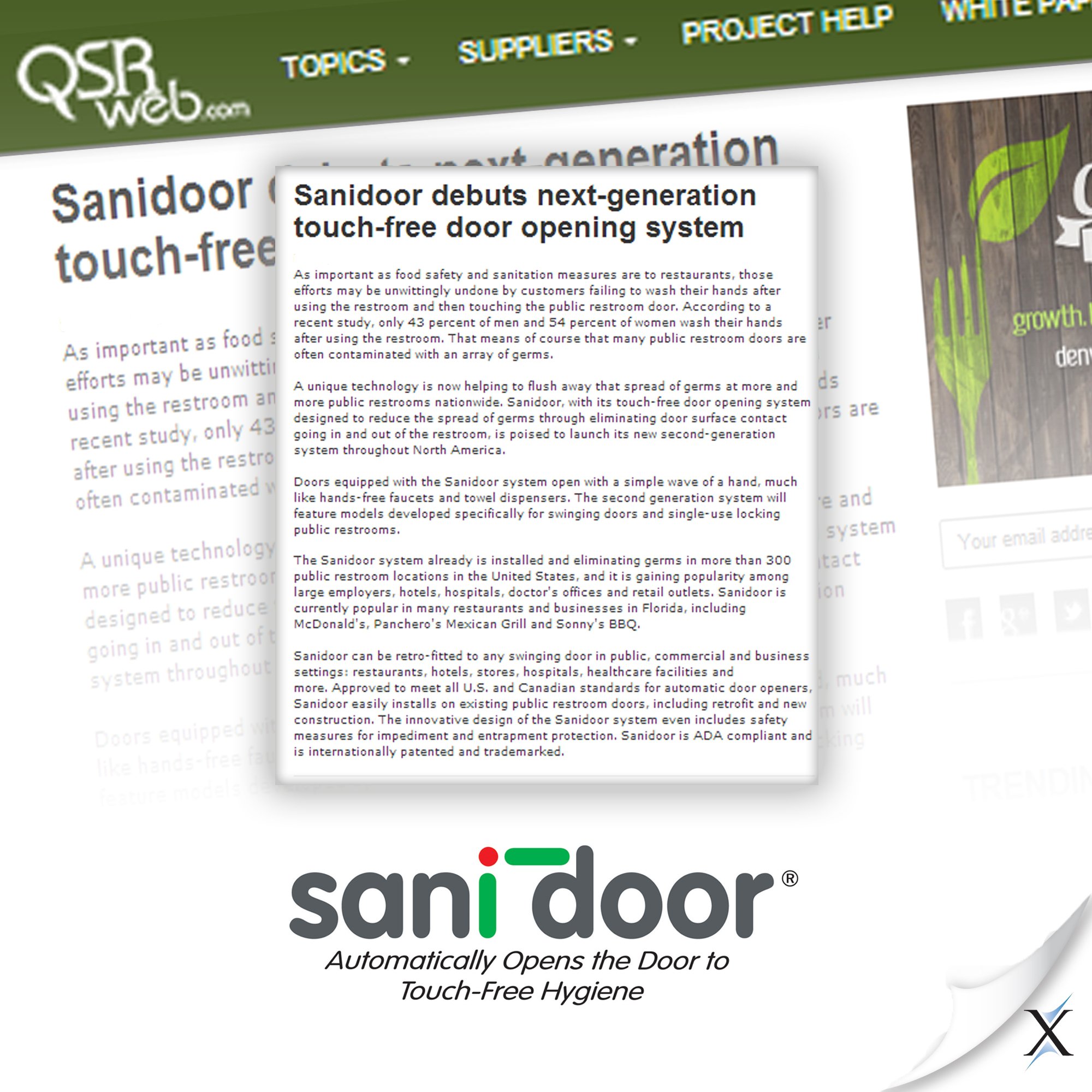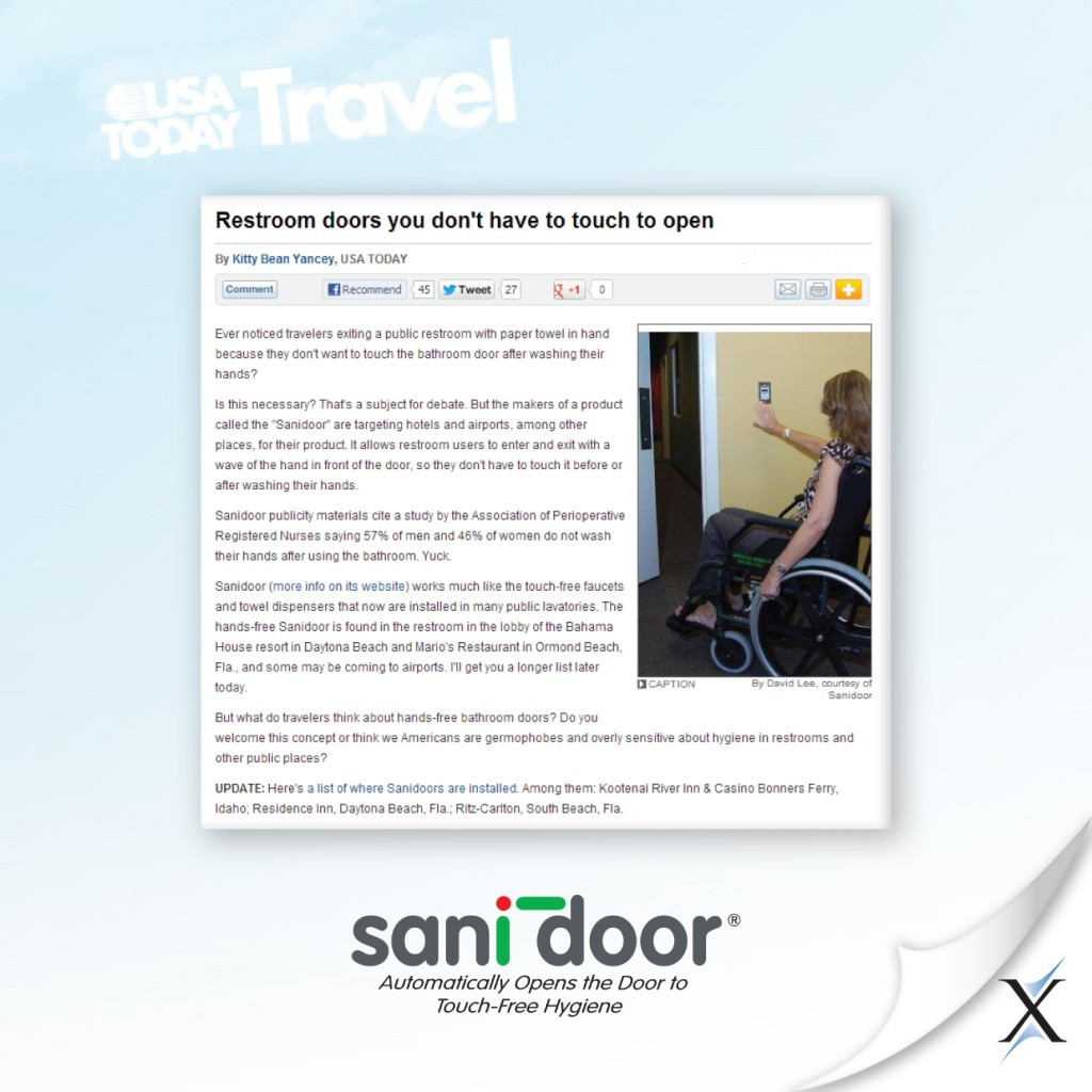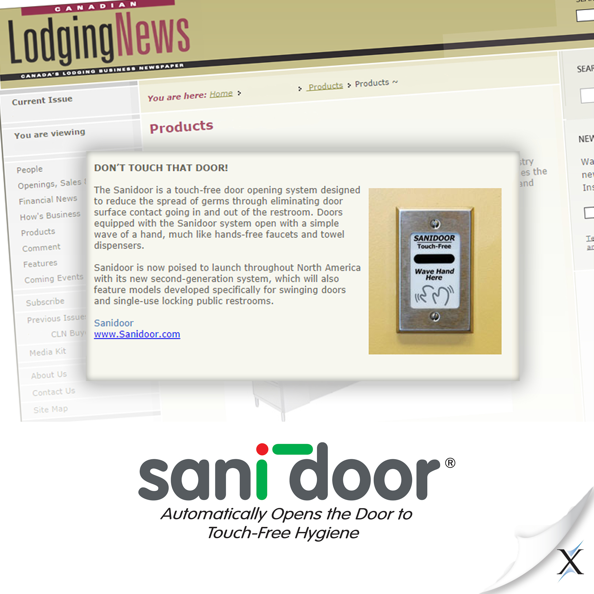 Sanidoor is a touch-free public restroom door opening system designed to reduce the spread of germs by eliminating contact with door surfaces when entering and exiting restrooms. Wanting to educate consumers and businesses about the system, Lemerand sought Axia out to promote the product.