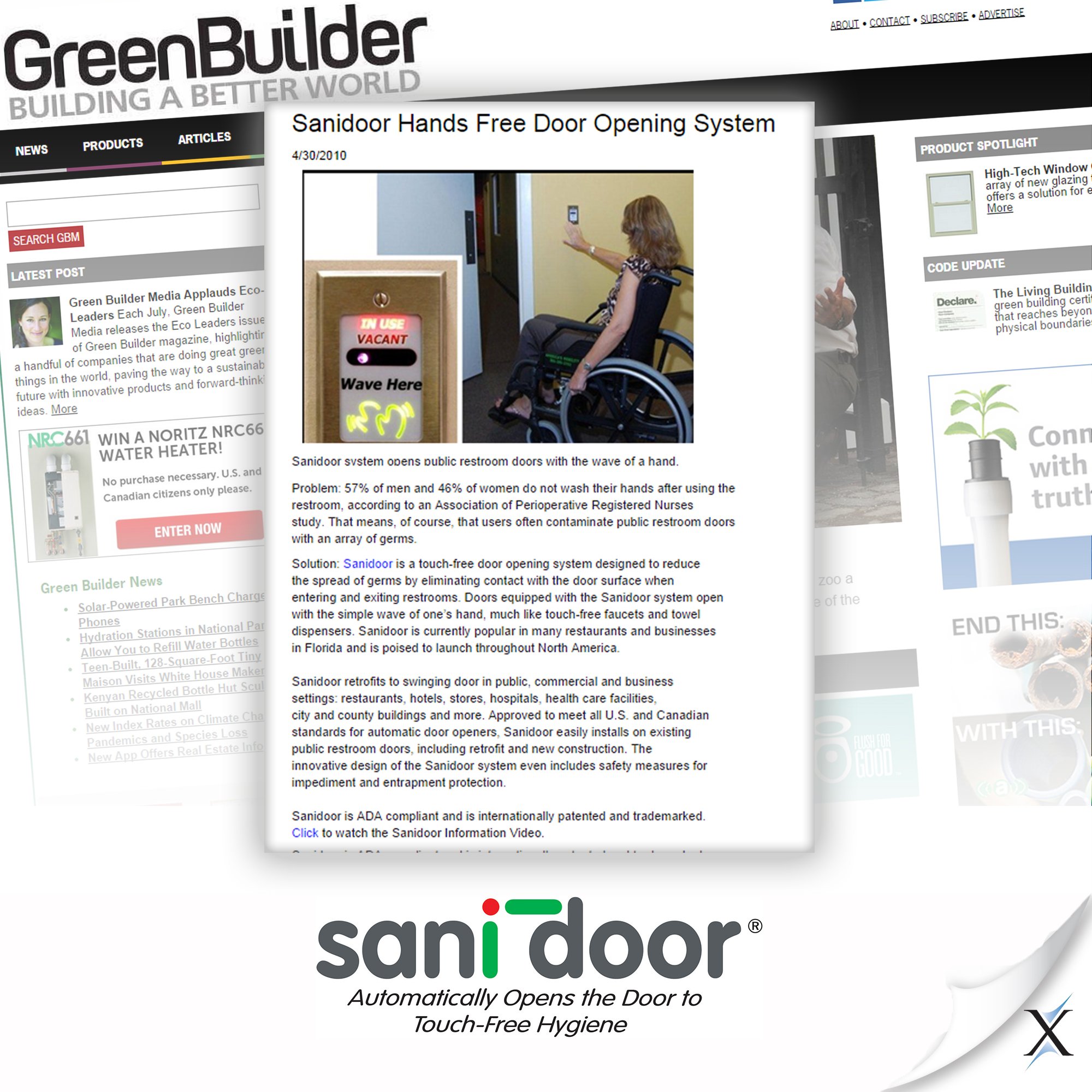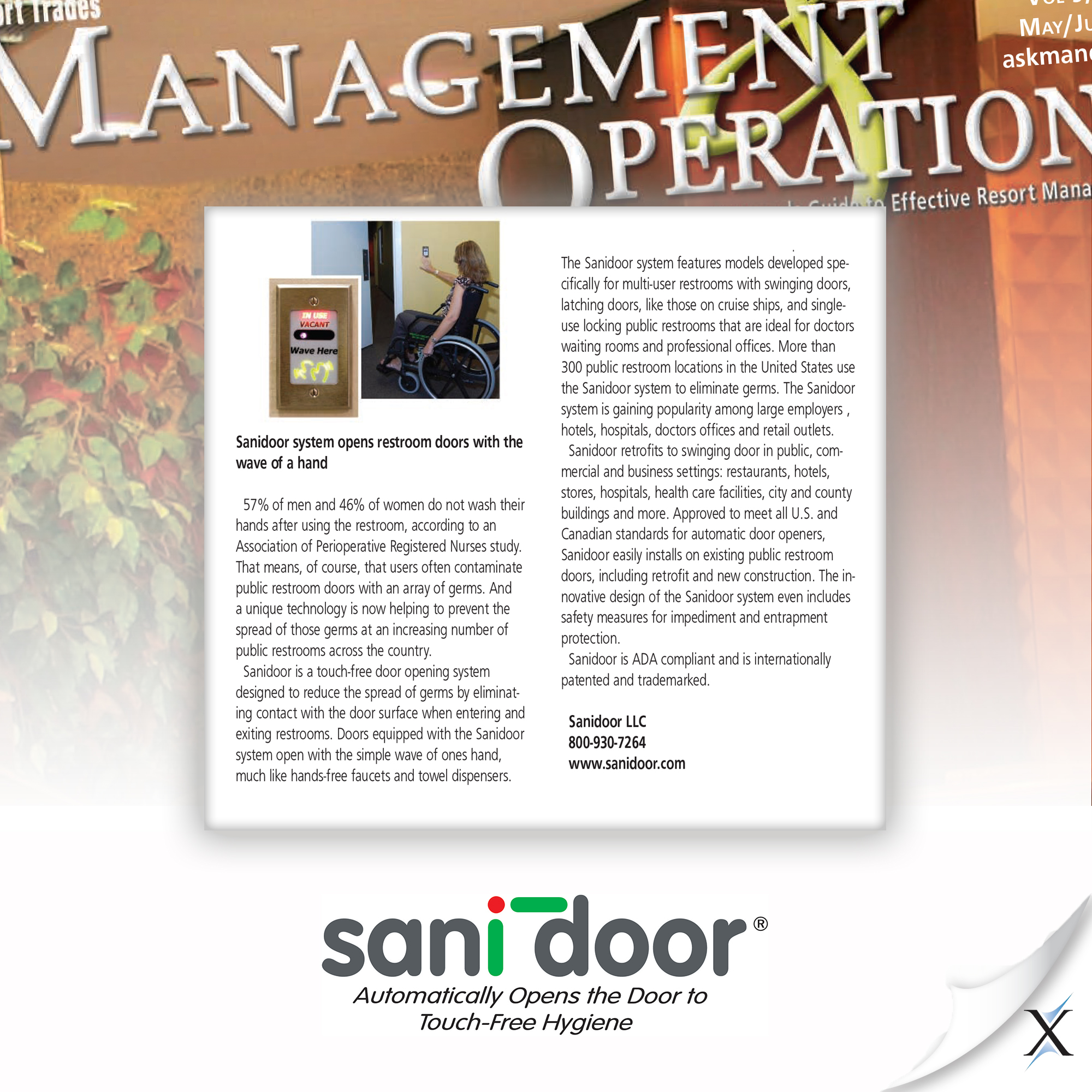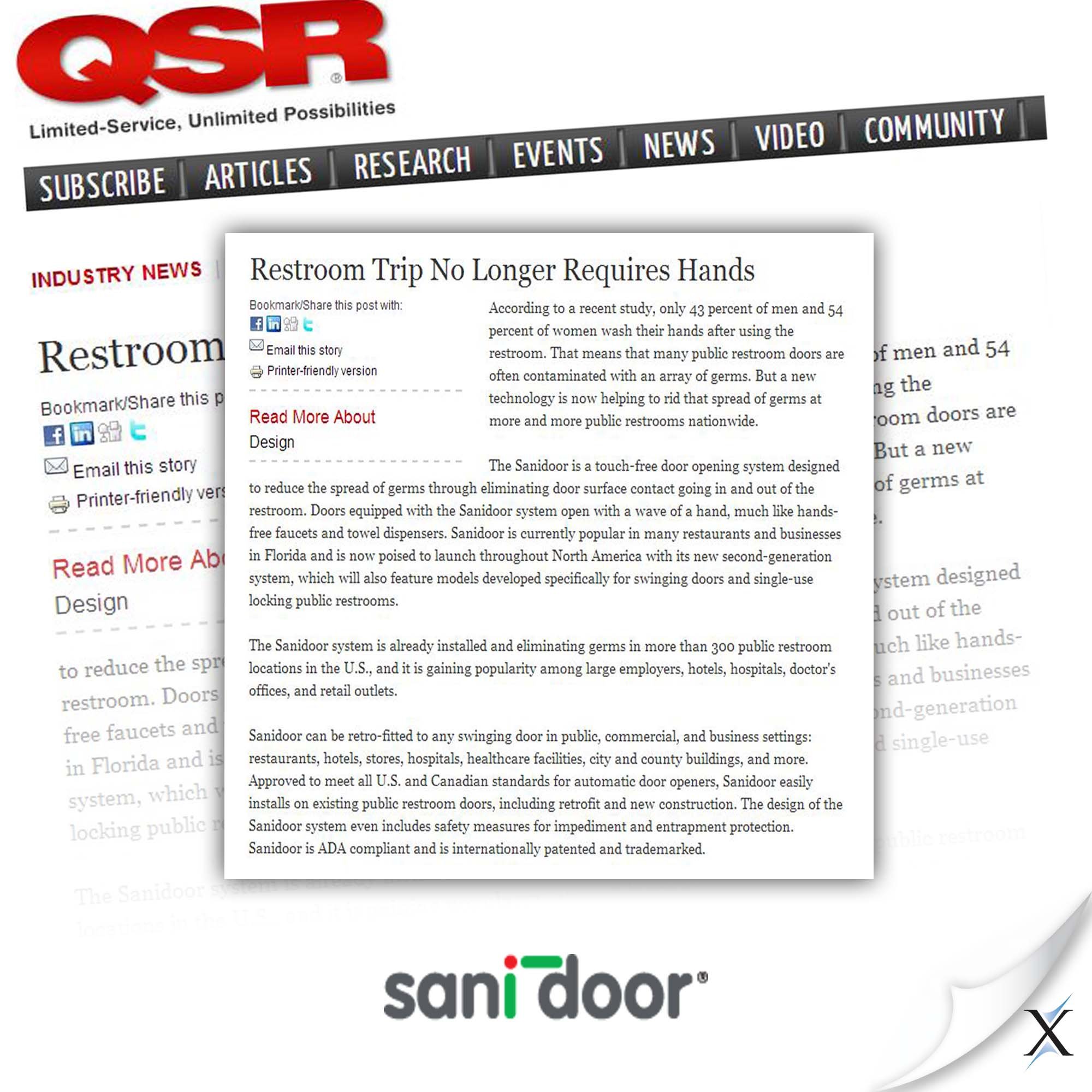 Sanidoor is a touch-free public restroom door opening system designed to reduce the spread of germs by eliminating contact with door surfaces when entering and exiting restrooms. Wanting to educate consumers and businesses about the system, Lemerand sought Axia out to promote the product.