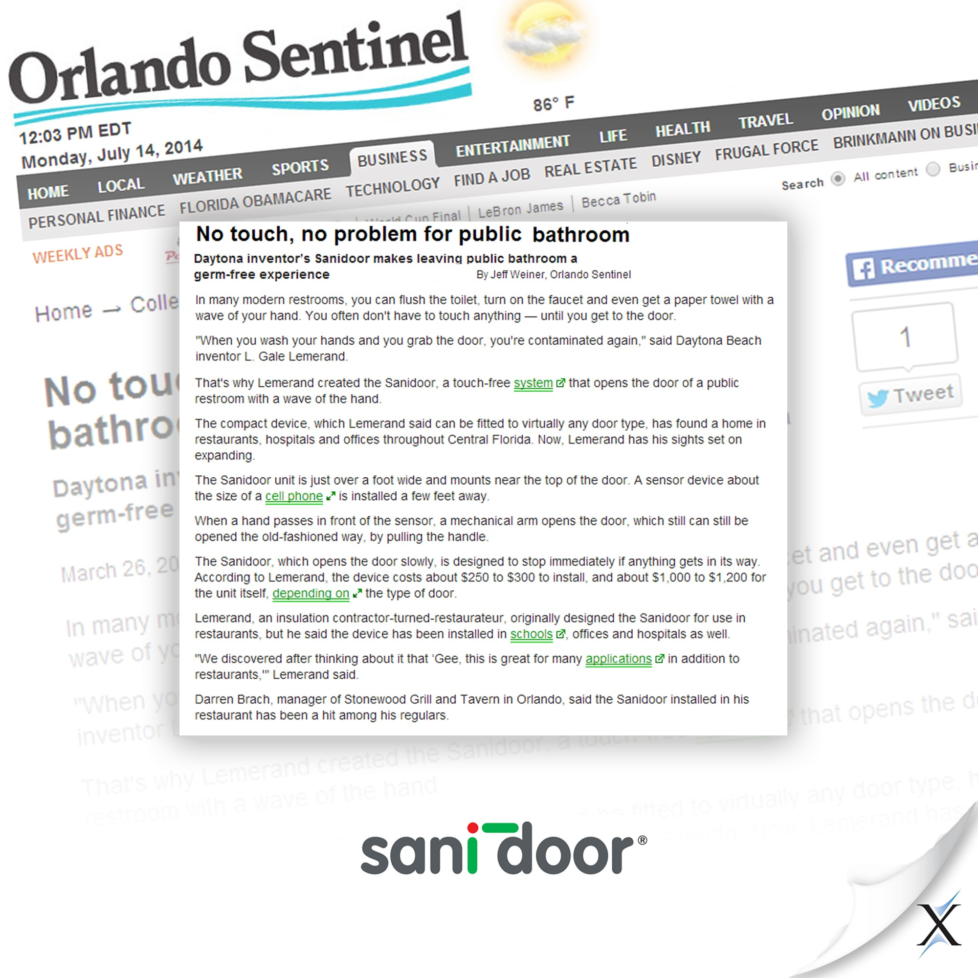 L. Gale Lemerand, a serial entrepreneur from Daytona Beach, Florida, hired Axia Public Relations to promote his invention: a touch-free door-opening system for public restrooms. Sanidoor’s goal was to educate consumers and businesses about the product and how it could reduce the spread of germs in public places like restaurants, hospitals, libraries, and other high-traffic areas. Axia launched a PR campaign throughout the U.S., Canada, and beyond, earning countless media mentions that brought Sanidoor new customers, distributions, and partners. Coverage of Sanidoor reached more than five million consumers and decision-makers, including earning mentions on nearly every ABC network affiliate.