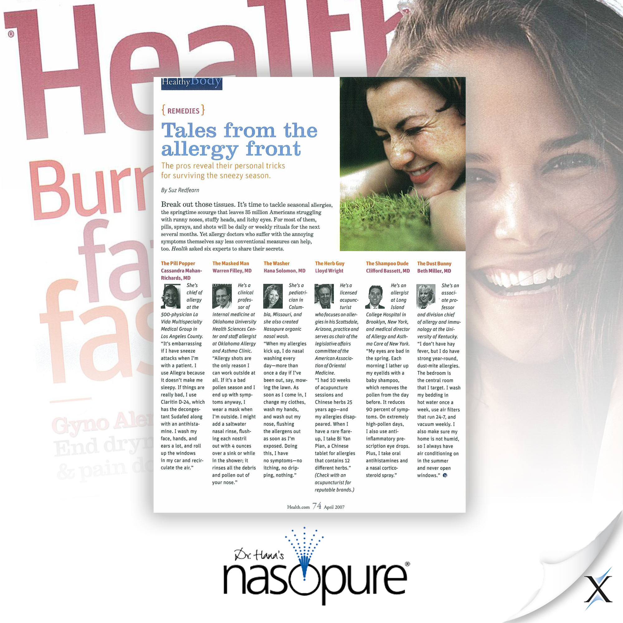 BeWell Health, a U.S.-based wellness product manufacturing company, hired Axia to increase brand awareness and sales of its new nasal-cleansing product, Dr. Hana’s Nasopure. Axia pitched BeWell Health's story to national news outlets. The campaign earned coverage in outlets including Health, Good Housekeeping, and The Wall Street Journal and helped boost sales to a reported $500,000 annually.