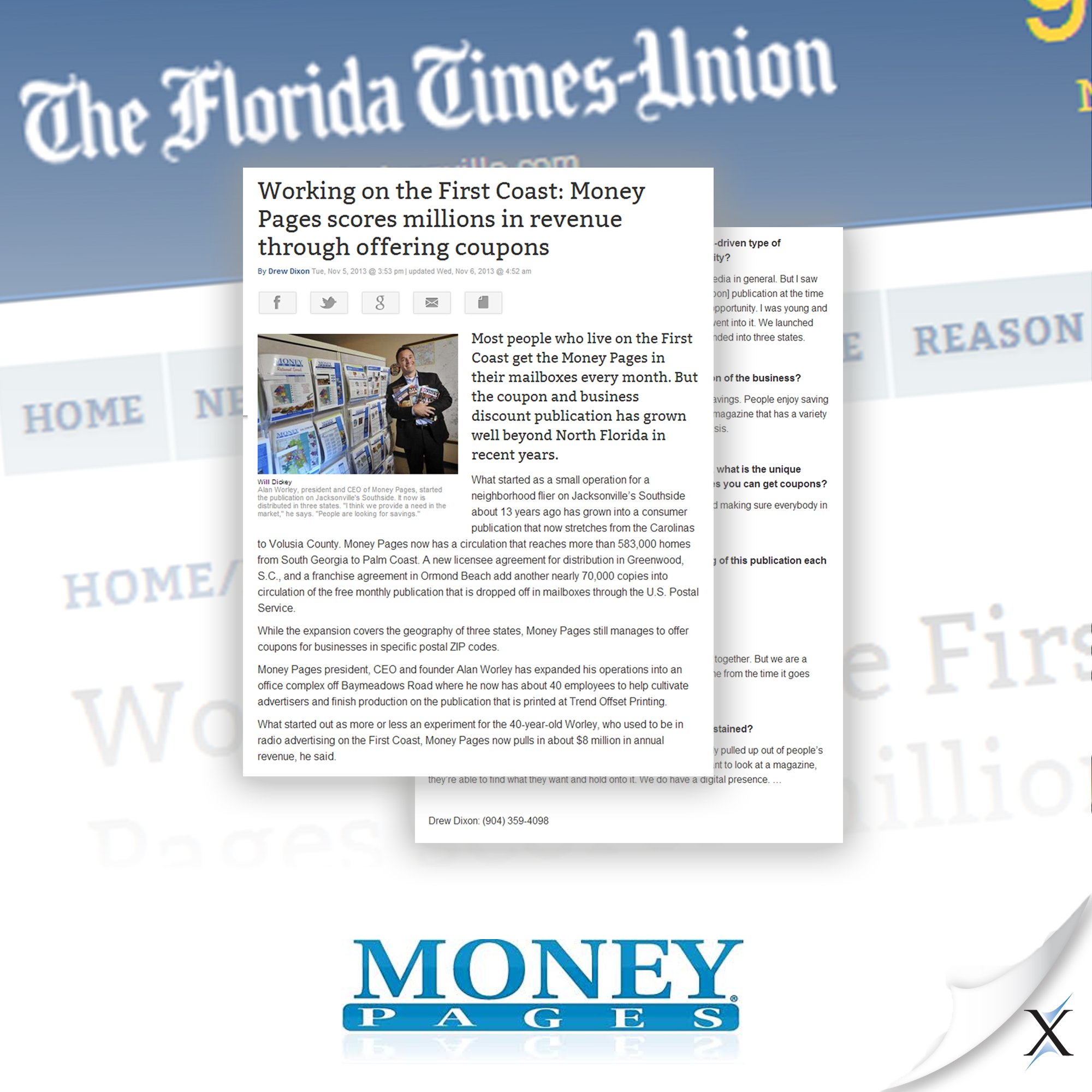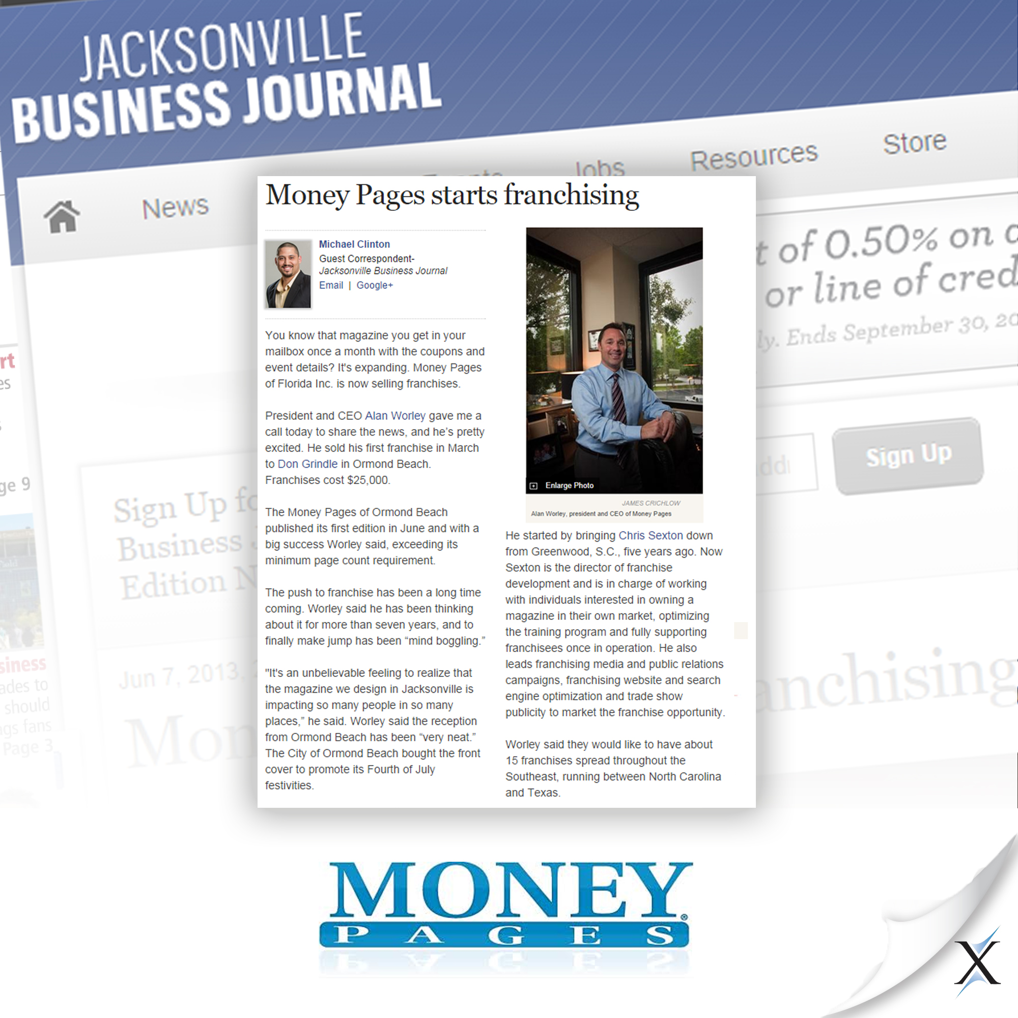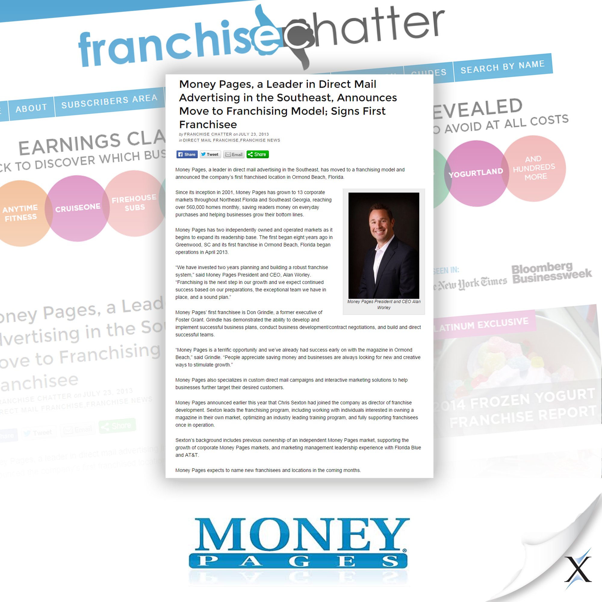 RELATIONSHIPS: Side by side, Axia lead Money Pages’ PR campaign and introduced CEO Alan Worley to news outlets – for earned media – covering consumer trends, business, franchise, publishing, direct mail and advertising industries.