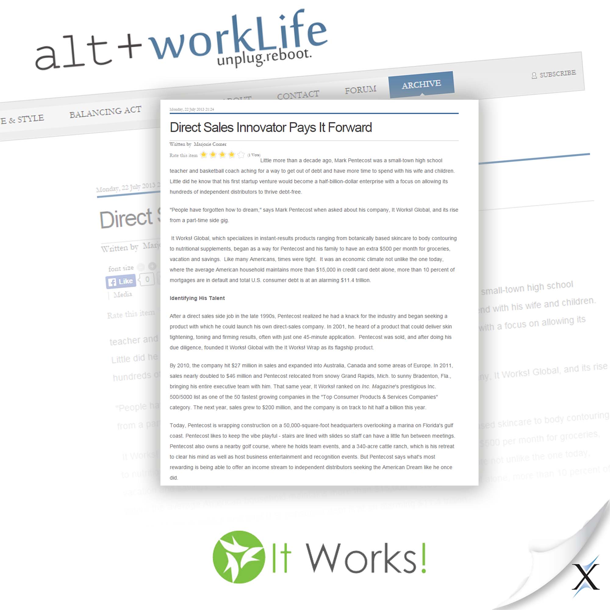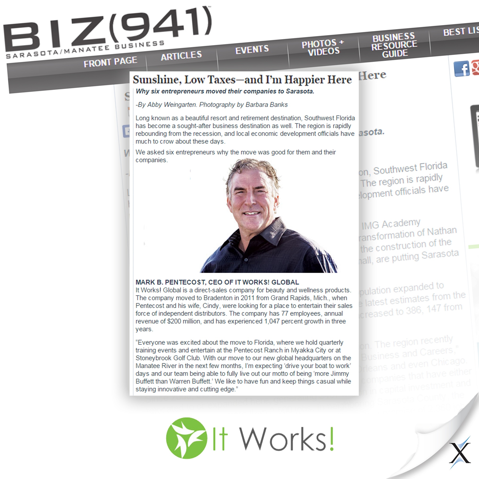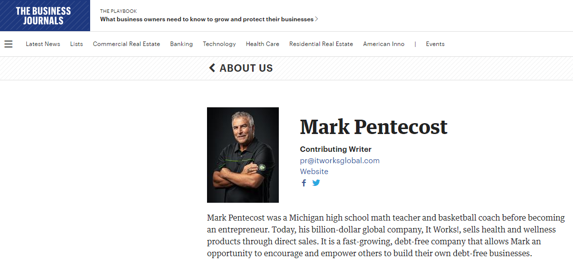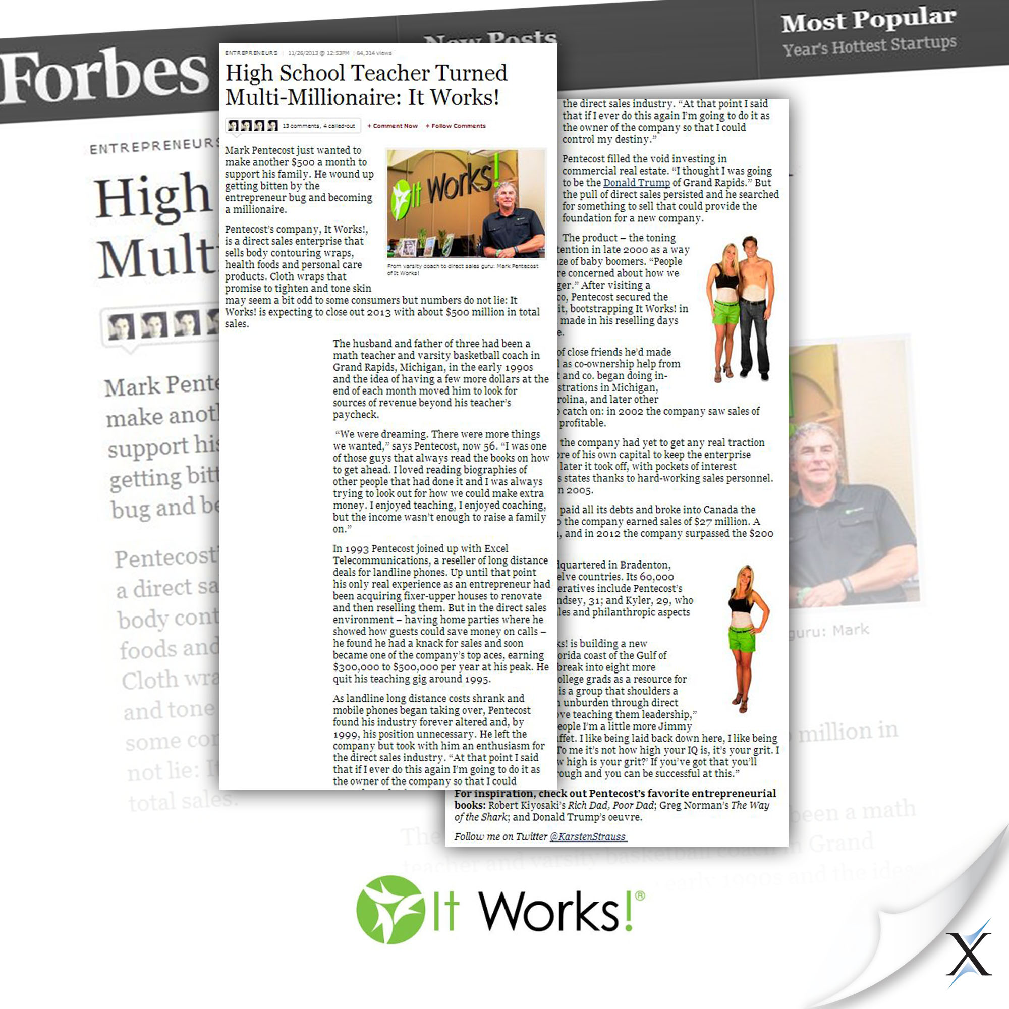 IT WORKS! had a compelling story to share with the media: The company’s CEO, Mark B. Pentecost, used his family’s meager savings to transform himself from a high school math teacher and basketball coach to founder of the billion-dollar brand. From humble beginnings, IT WORKS! now has more than 60,000 independent distributors worldwide.