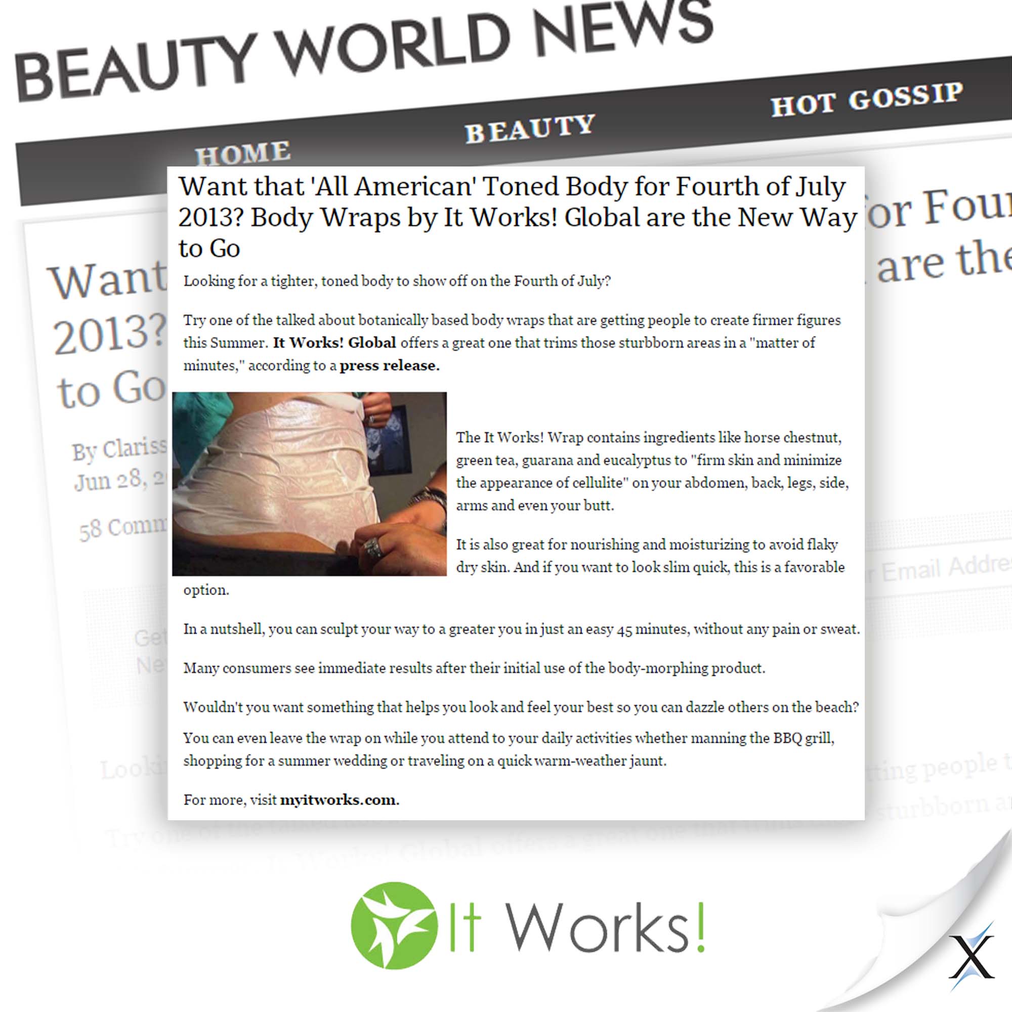 Axia developed company and product pitches to promote IT WORKS!’ unique success story. Initial ideas included referring to the flagship product as the IT WORKS! Wrap (rather than That Crazy Wrap Thing or the Ultimate Body Applicator) in order to improve name recognition and SEO. In addition, Axia positioned the IT WORKS! Wrap as a unique, botanically based, affordable beauty product that provides the same kind of results that expensive and time-consuming spa treatments offer. Axia leveraged the numerous editorial calendars of top media outlets for angles and timelines to pitch the IT WORKS! Wrap with an emphasis on identifying holiday and “getting ready for beach season” summertime-type opportunities. After 10 months of focusing solely on the IT WORKS! Wrap, Axia added additional IT WORKS! products to its pitching toolbox, including the Greens! Chew, Lip & Eye and Hair Skin Nails. Axia continued to pitch the IT WORKS! Wrap and the company’s story.