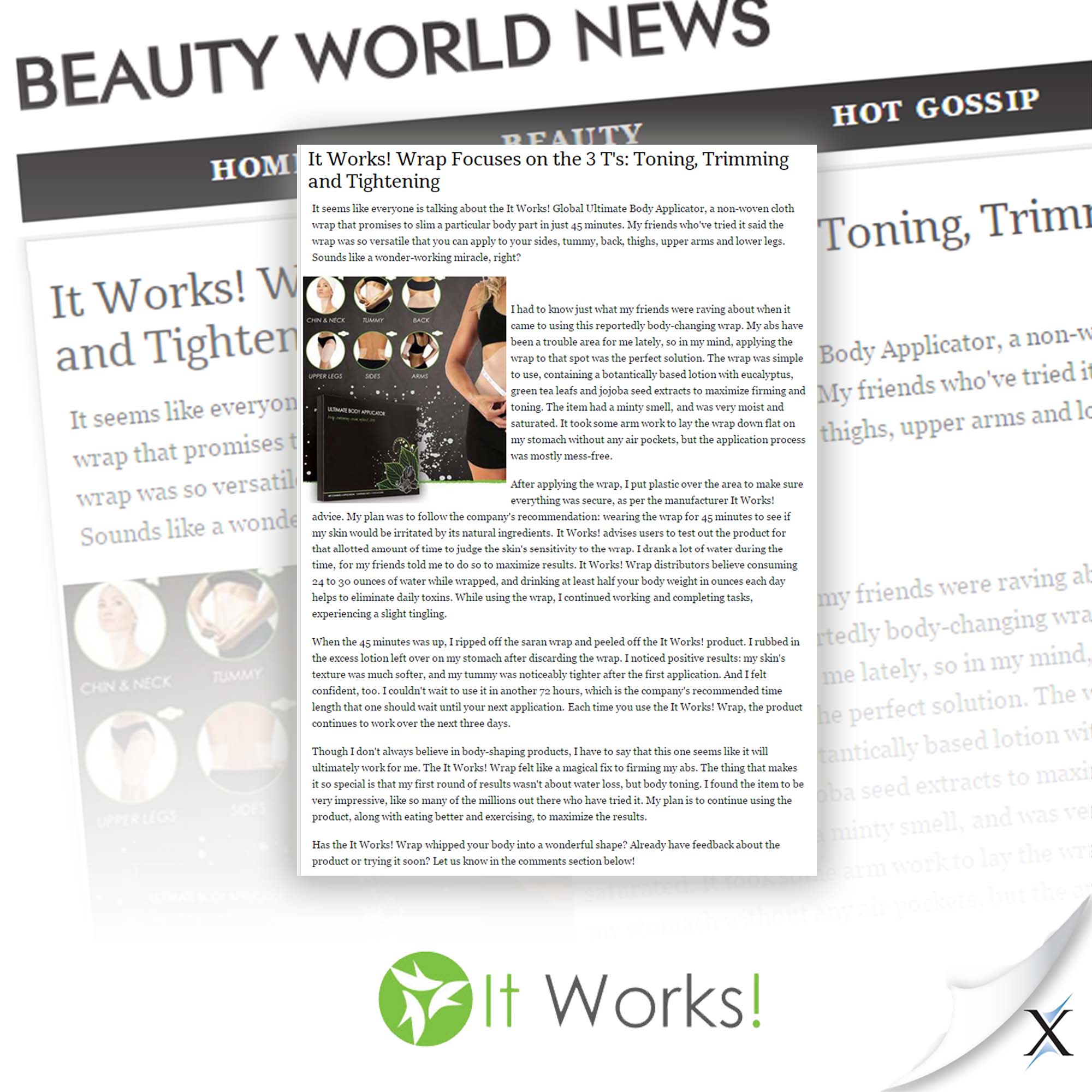 Axia’s relationships with reporters at target media outlets were the key to launching the PR program. The PR firm approached contacts in the business, health, beauty, and wellness industries, as well as those among elite beauty editors in New York City, to create national awareness for the brand. Axia sent out news releases and product samples and recruited high-traffic beauty bloggers and mommy bloggers to try the IT WORKS! Wrap for product profiles and reviews. The firm also continued to create relationships with reporters through media lists, social media, and New York City contacts at national business, health, wellness, and beauty media outlets. Axia shared Mark’s story, spanning his school teacher beginnings to his success as an entrepreneur, with key businesses and media.