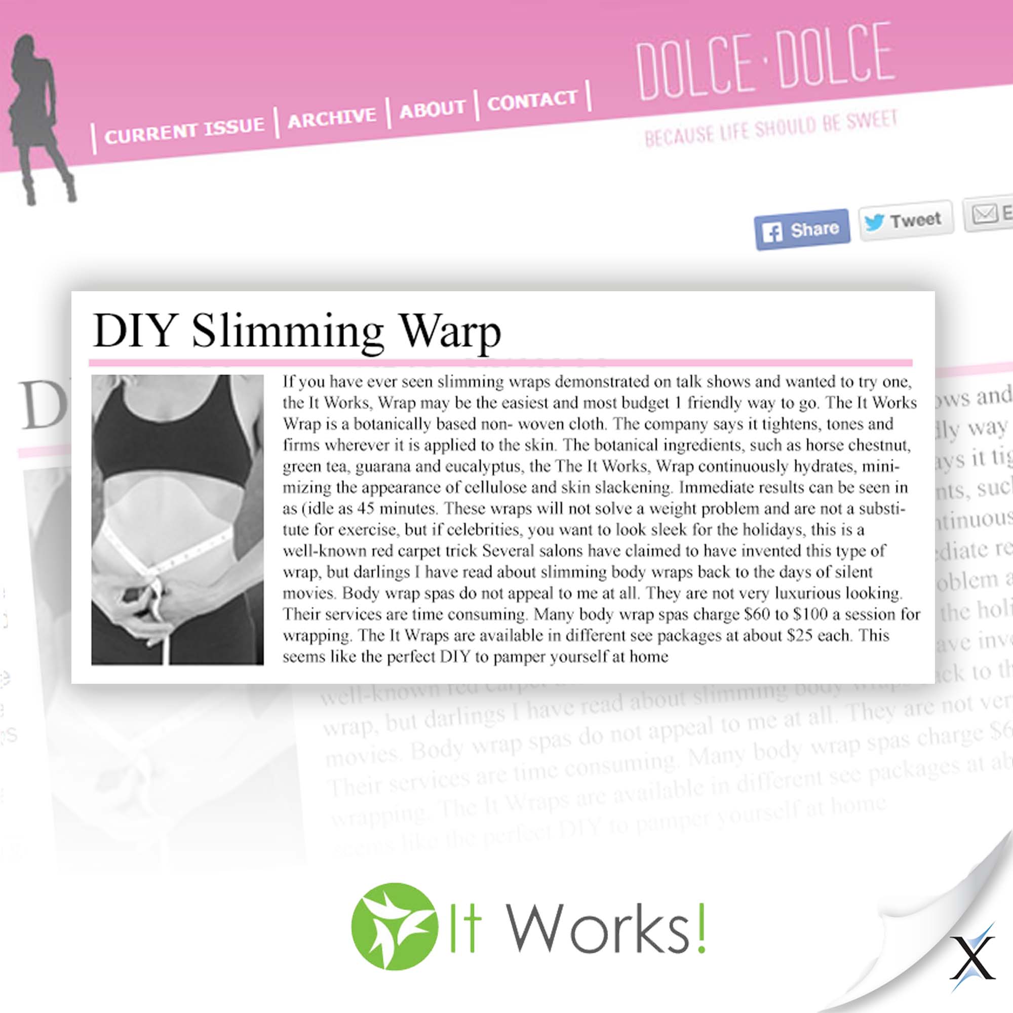 During the holidays, A Mom’s Take, the Indiana Chronicle, Splash Magazines, and the fourth annual Accessorize for the Holidays event in New York also featured the IT WORKS! Wrap in their gift guides. One of the top Latina magazines, Siempre Mujer, with more than 500,000 readers, featured the IT WORKS! Wrap in a product profile, reaching an important new market of consumers for the company. Industry outlets like Home Business Magazine, Home-Based Working Moms, and Small Business Opportunities covered IT WORKS!