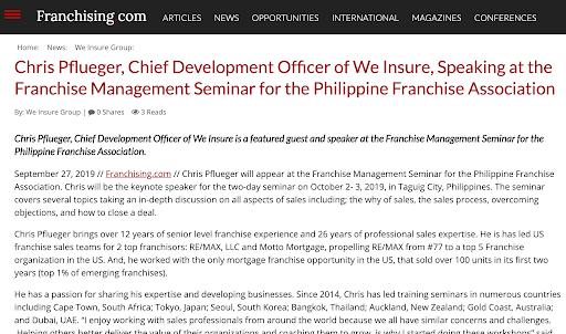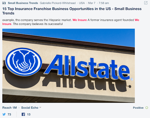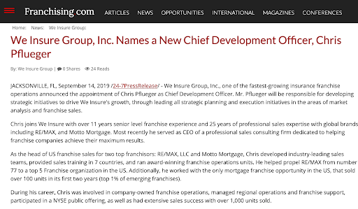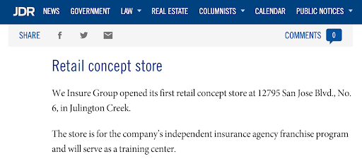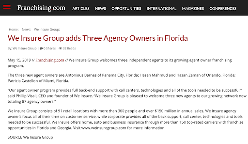 - Coverage in local, regional, business, and insurance and franchise trade media