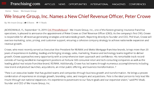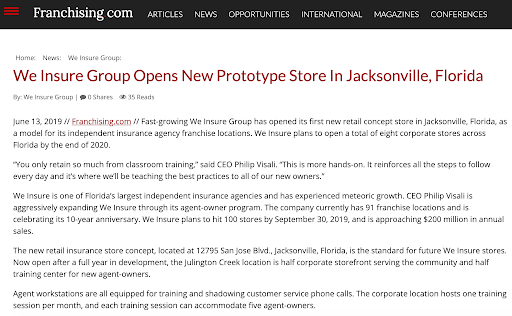 - Reinforced credibility for the We Insure brand as it scaled its franchise model