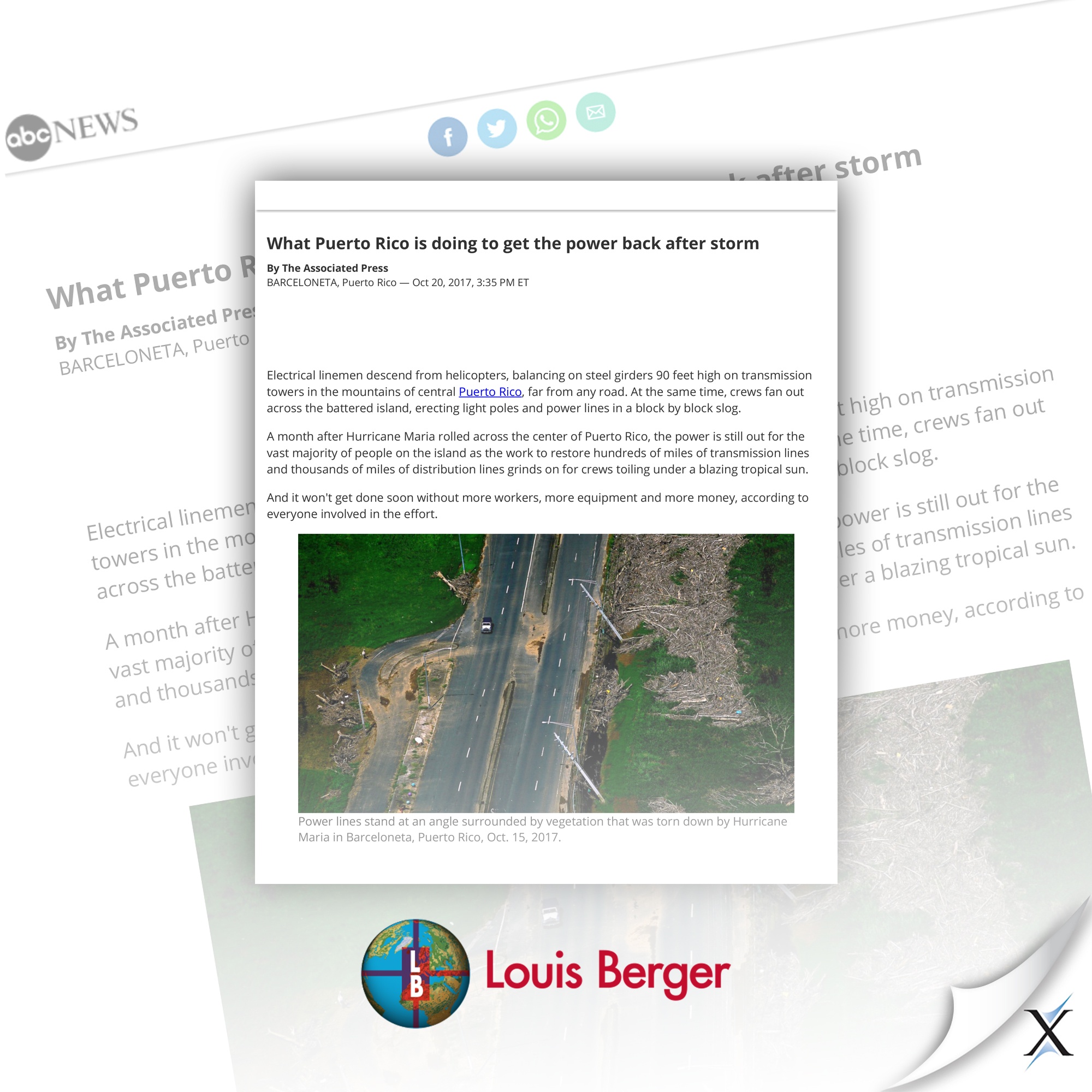 Louis Berger (now WSP), a top federal contractor for infrastructure and development clients, needed help managing a national media campaign to spread awareness of their hurricane relief efforts. This campaign leveraged the media to highlight Louis Berger’s efforts in Puerto Rico. Because of the coverage, Louis Berger earned more than 300 media stories, which gathered over 665 million media impressions and over 7,049 social media shares.