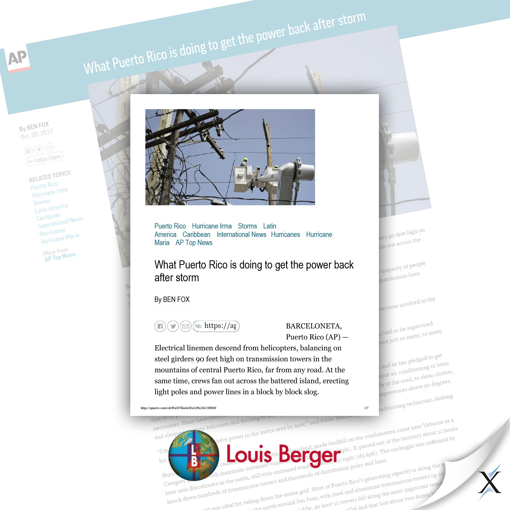 This campaign leveraged existing relationships to quickly coordinate drone photography and video footage within 24 hours to capture Louis Berger’s efforts. The process included alerting journalists of Tom Lewis’ (president of U.S. division) availability for interviews, expert insights, and thoughts on implementing solutions. With numerous reporters actively covering efforts in Puerto Rico, the campaign encouraged them to cite Lewis as an expert source, which increased his position as an expert source and thought leader.