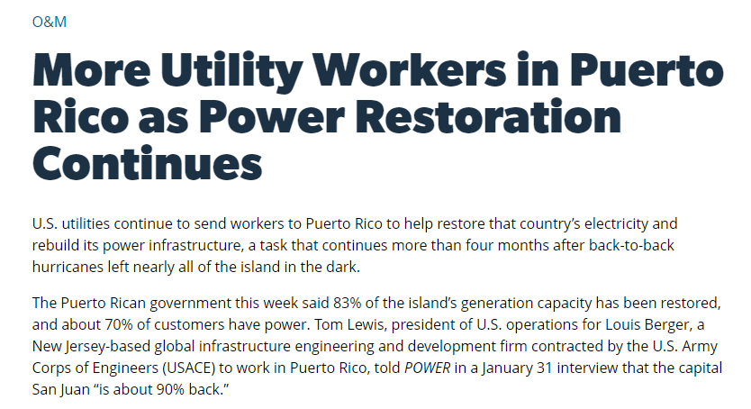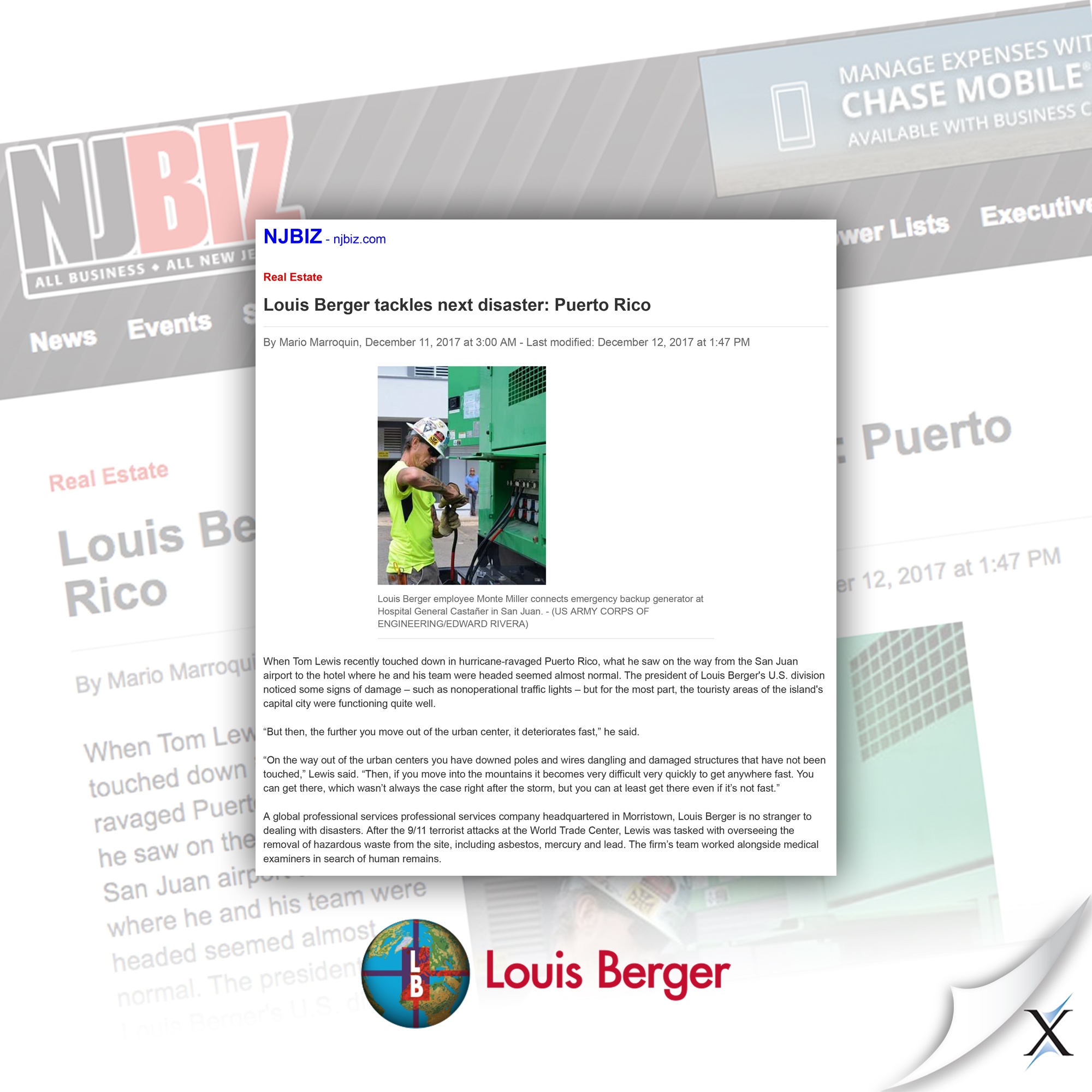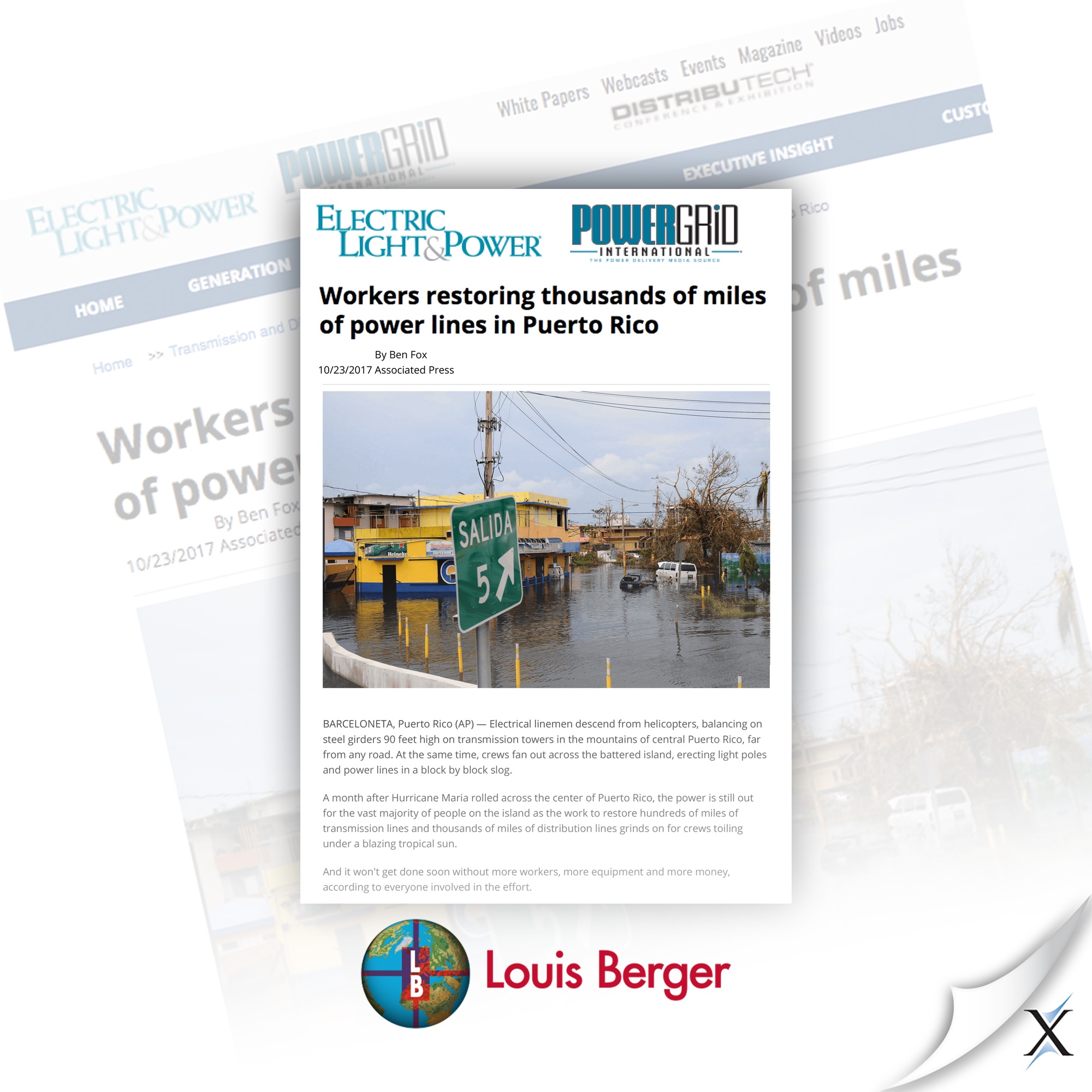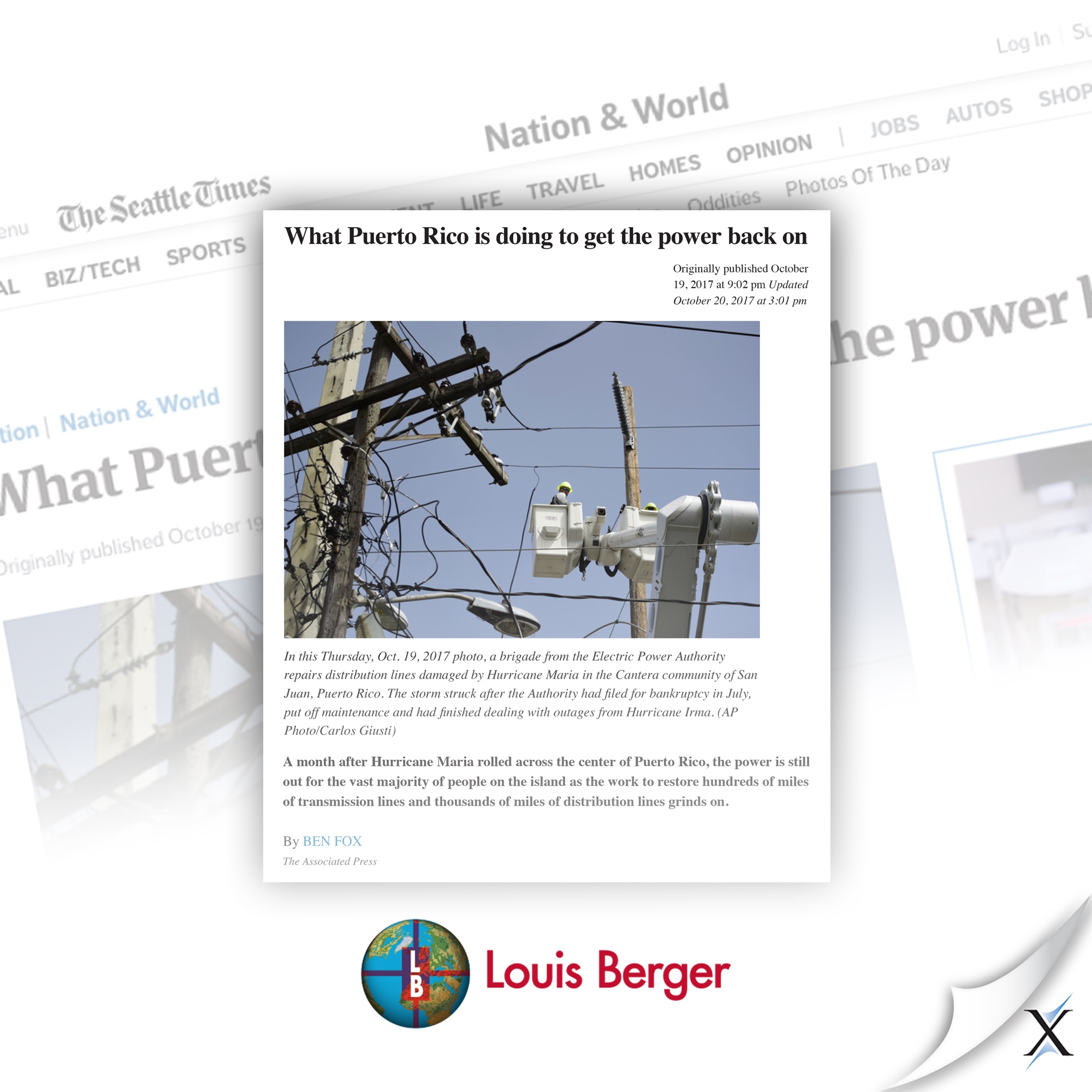 emergency recovery efforts after Hurricane Maria hit Puerto Rico’s electrical grid. As a top federal contractor, the company played a large role in Puerto Rico’s redevelopment. Louis Berger delivered more than 300 power generators to the island as part of hurricane recovery efforts.