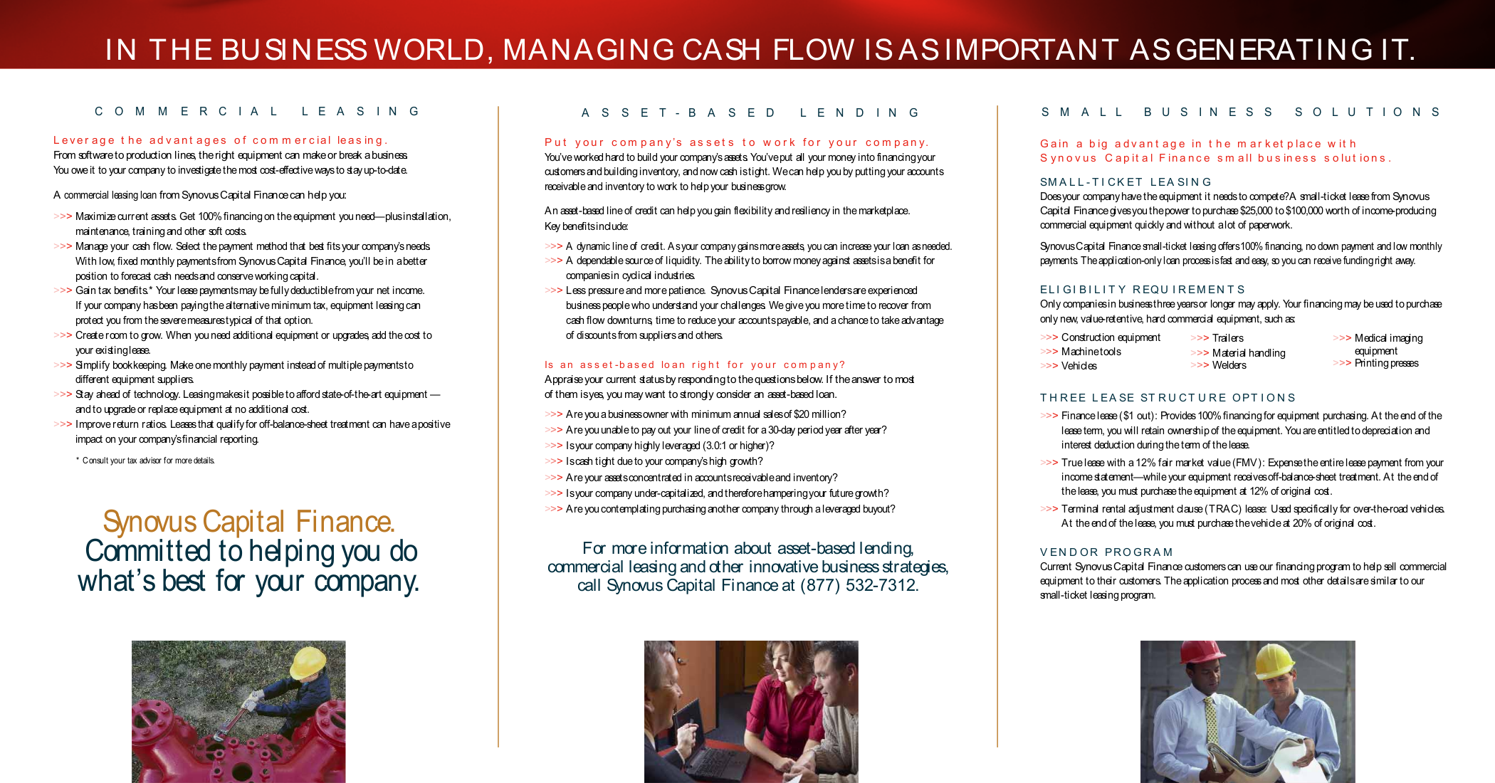 When Synovus combined its Commercial Lending and Asset Based Lending business units to become Synovus Capital Finance, it needed new collateral materials to launch the new division and engage employees and customers.