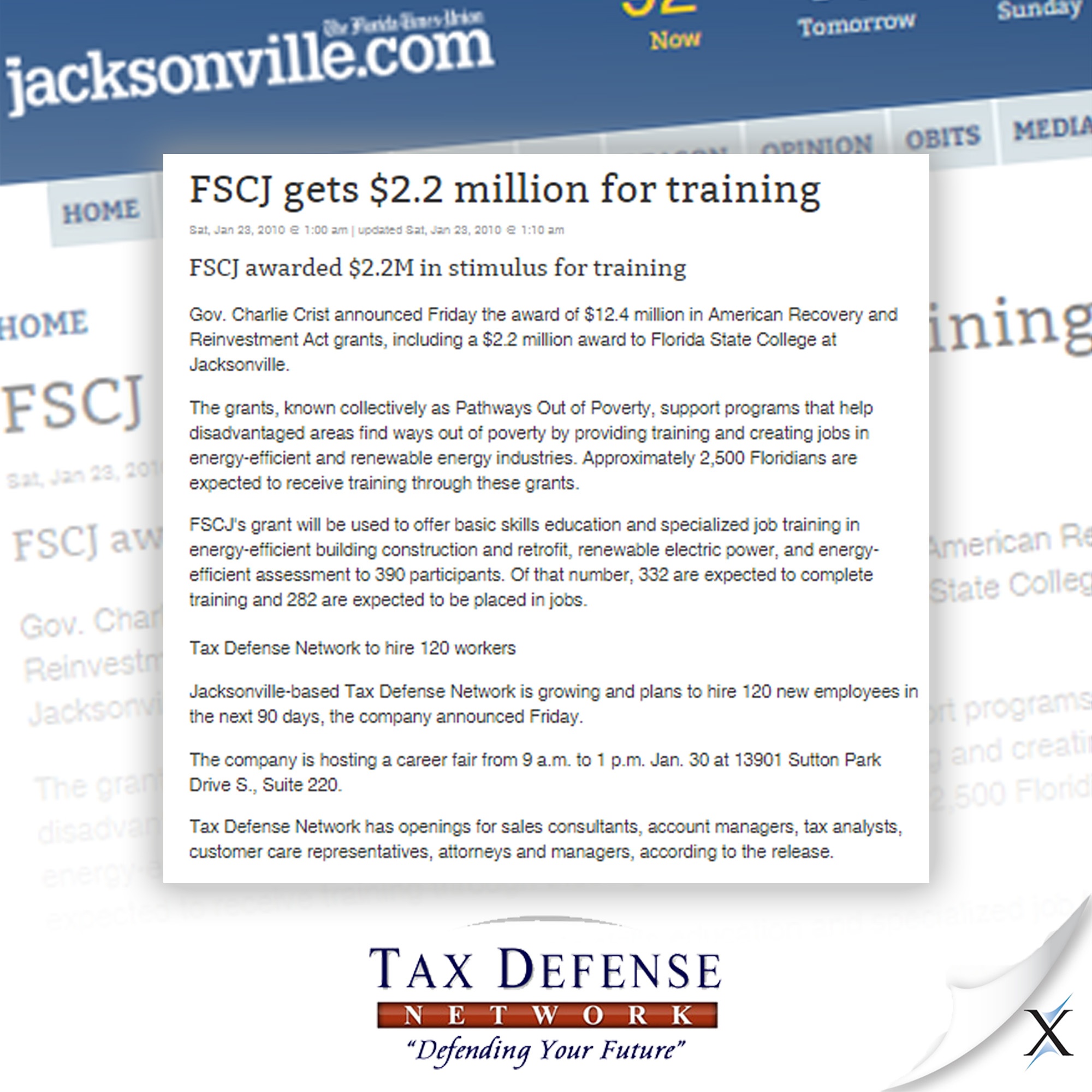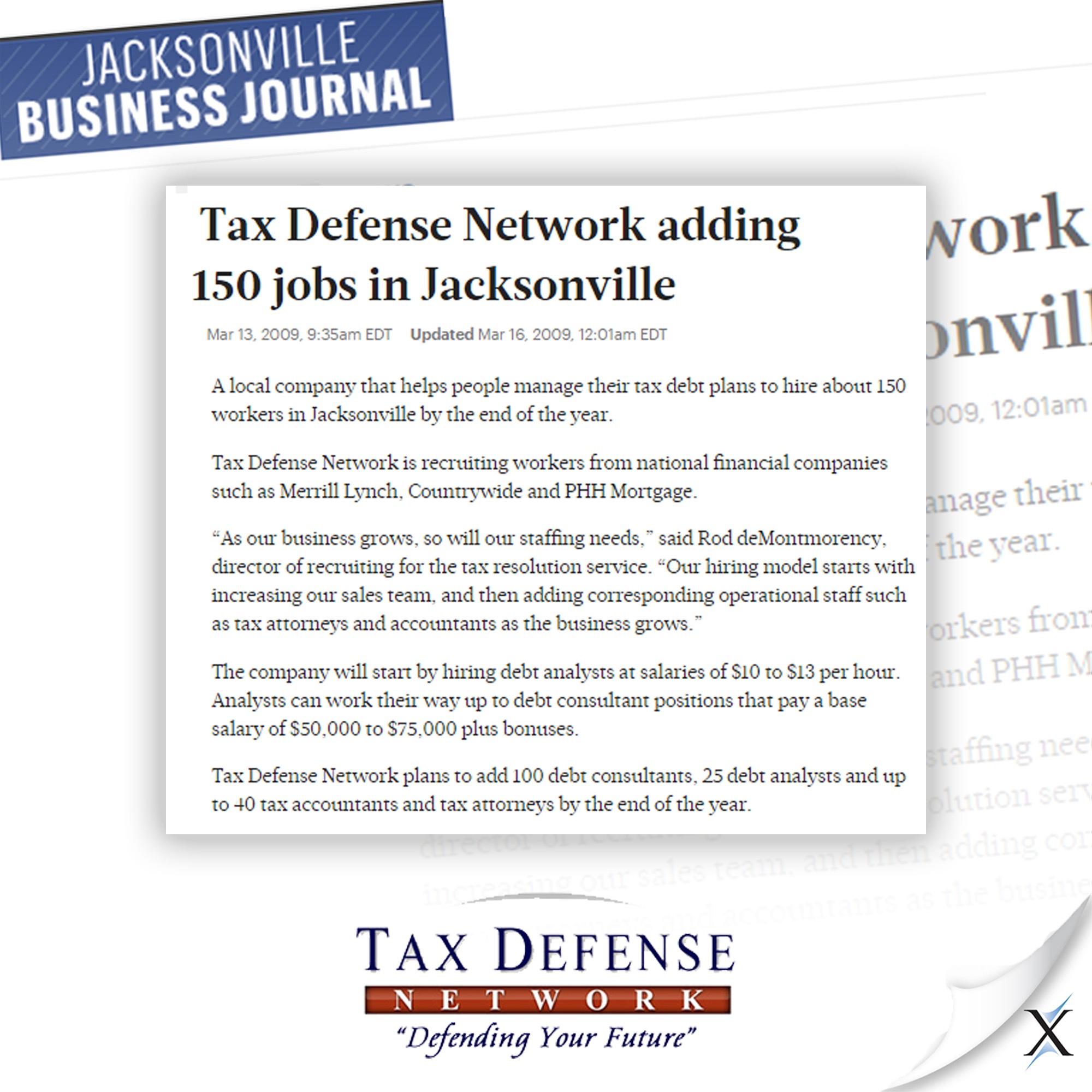 The earned news coverage has helped boost the company’s sales and given Tax Defense Network much needed credibility. The company uses the news clips on its website and in business development to soften sales with new prospective customers. The coverage earned in the first quarter continues to benefit Tax Defense Network as a viable tool for attracting and securing new customers.