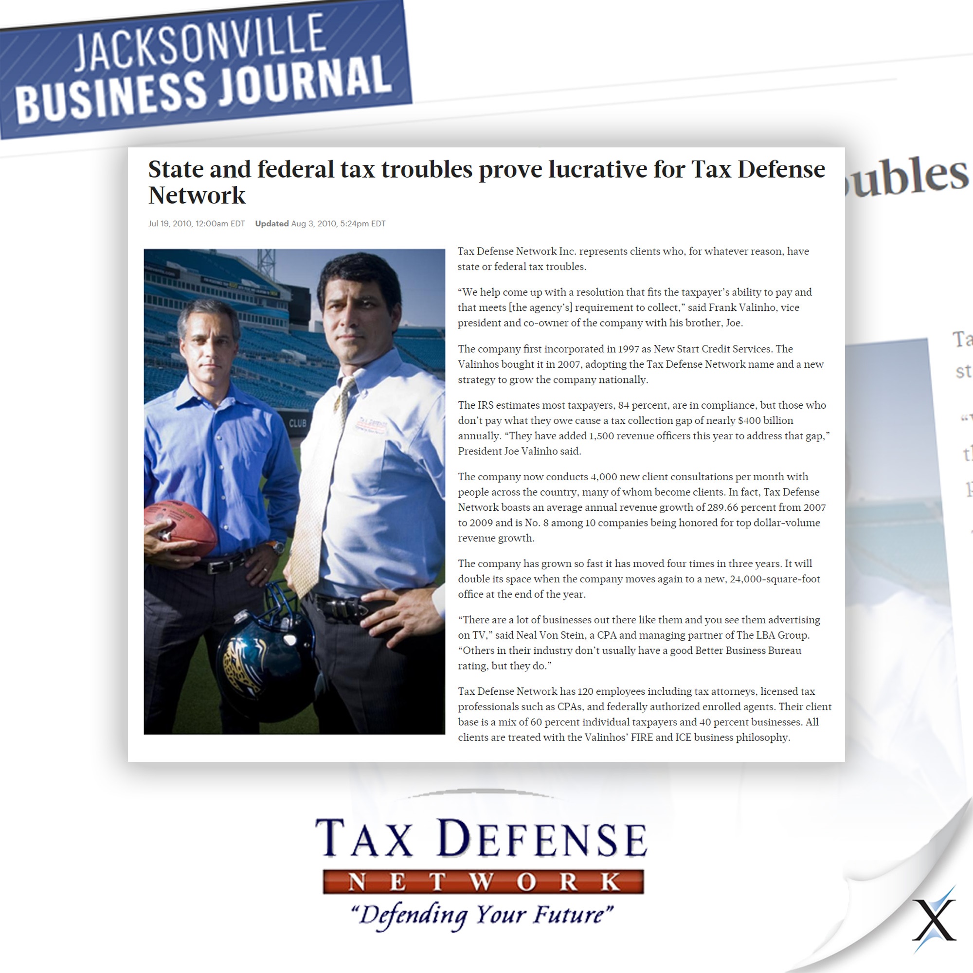 Axia increased awareness of Tax Defense Network by positioning the company as a national expert on tax-related issues, specifically tax debt. After Axia’s MediaMaster spokesperson training, Tax Defense Network reaped the benefits by holding editorial board sessions with target business outlets and with national and local earned news coverage in target national TV, radio, magazines, newspapers, and internet news media from Axia's NewsBureau package.