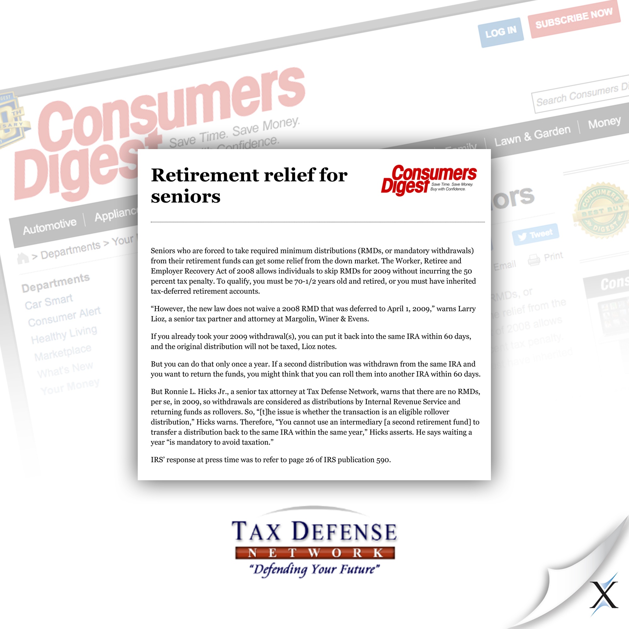 Tax Defense Network is a tax resolution service that has helped more than 10,000 taxpayers across the country with their IRS tax debt since 1997. Tax Defense Network hired Axia Public Relations for a three-month PR project/campaign to generate earned media coverage for its services leading up to April 15 – Tax Day.