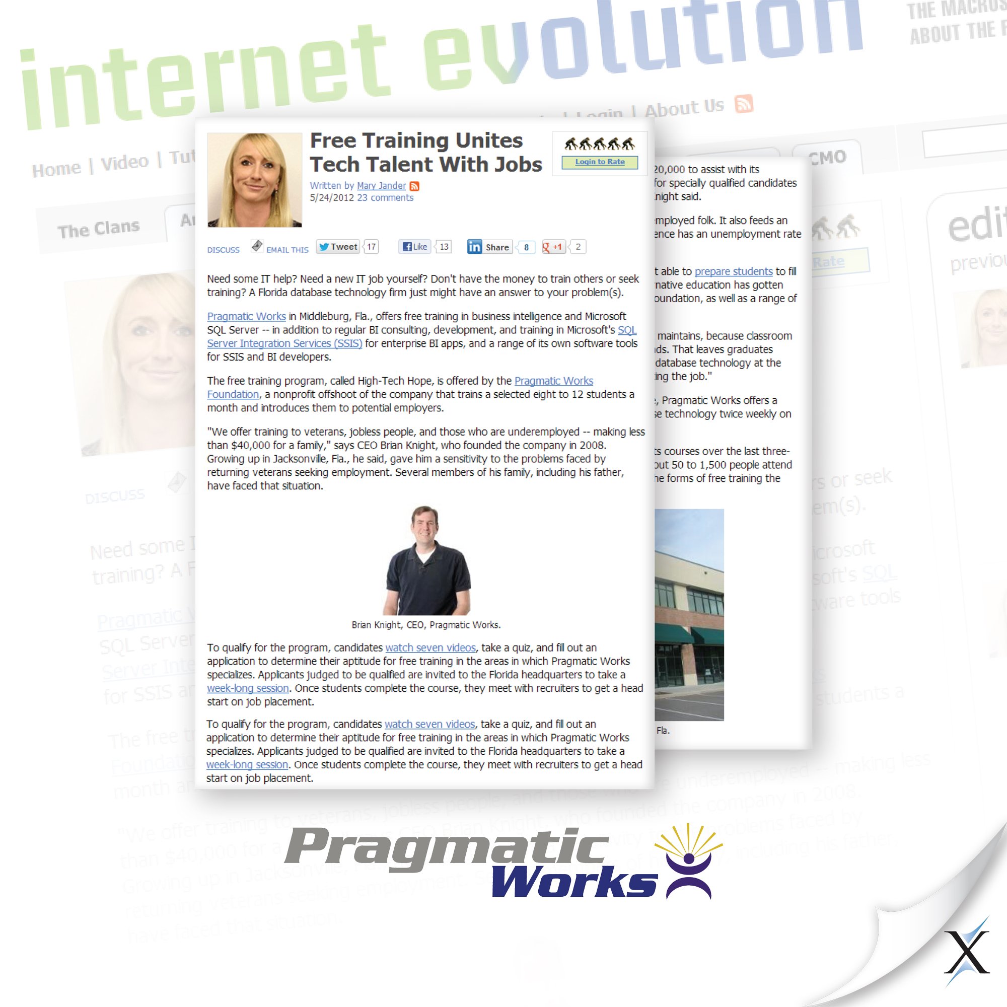 Pragmatic Works began its relationship with Axia Public Relations as a company wanting to boost community and industry awareness of its corporate social responsibility program; a free one week IT training program for veterans and unemployed/underemployed individuals without previous IT employment experience known as the Pragmatic Works Foundation. Axia, recognizing the visibility potential of this campaign, re-branded the program as High Tech Hope (HTH) and leveraged CEO Brian Knight's tremendous talent as a skilled spokesperson in accomplishing this task.