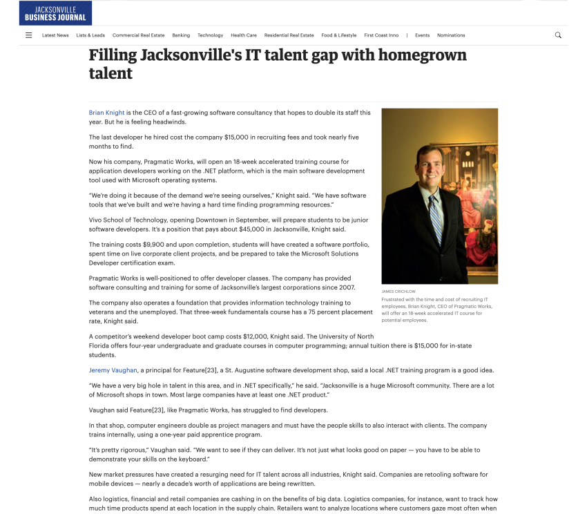 The program was centered around a free, one-week IT training program offered to veterans and unemployed/underemployed individuals who lacked IT employment experience. During the course of its campaign, Axia branded the program as High-Tech Hope and leveraged CEO Brian Knight’s vision to help get High-Tech Hope the visibility and participation growth that Pragmatic Works desired.