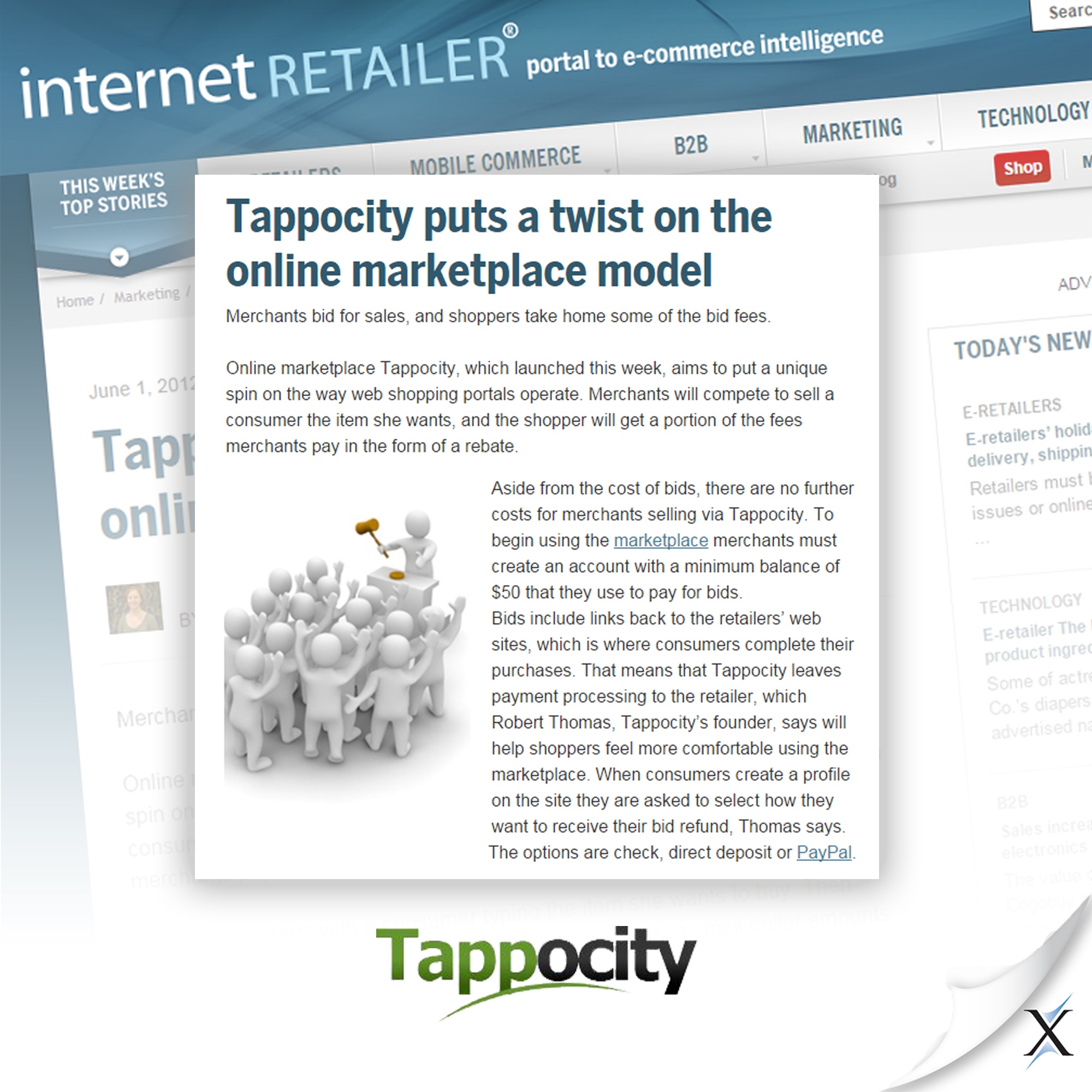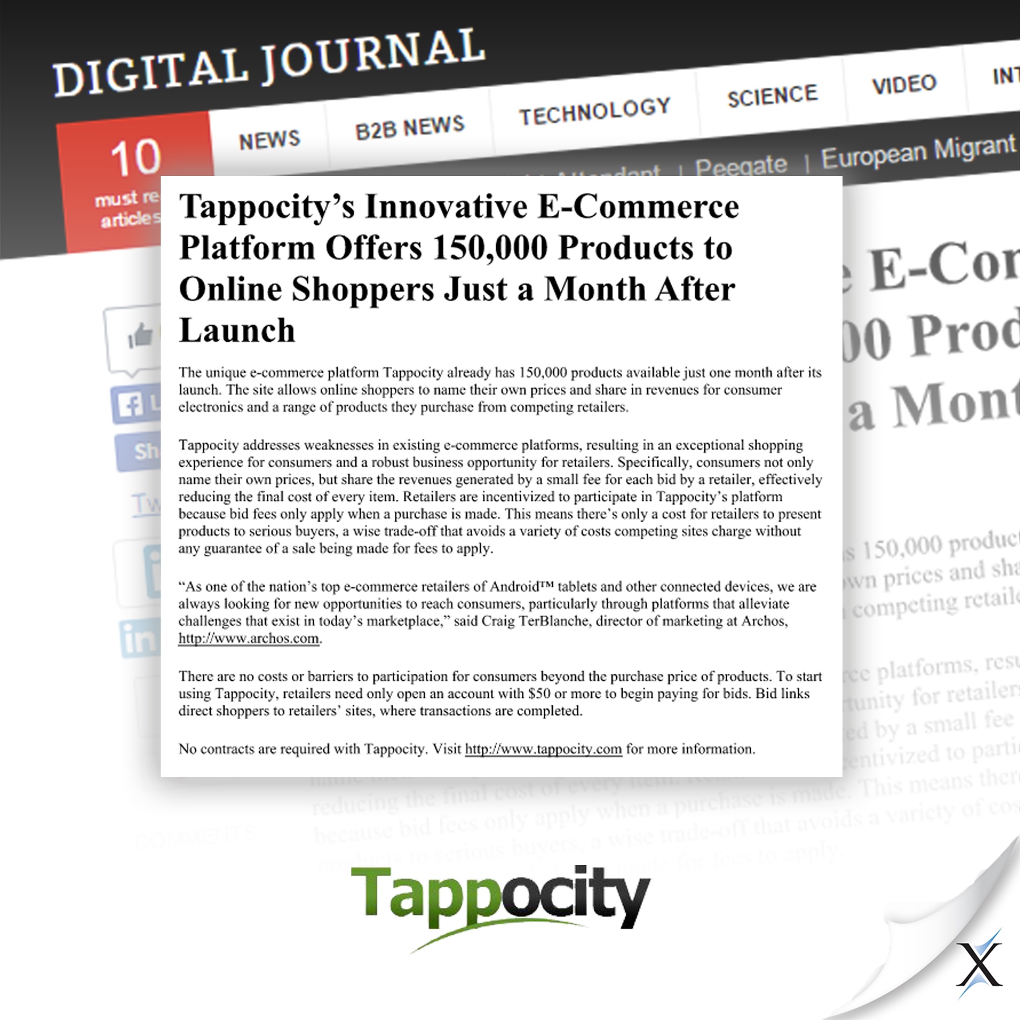 Tappocity, a bargin shopping website that shares revenue with purchasers, reached out to Axia Public Relations for effective public relations that could get the brand launched. Through the campaign, Axia introduced Tappocity to important audiences and critical resources such as consumers, manufacturers, consumer electronic suppliers, private equity and retailers. All of these resources helped to build consumer and merchant knowledge of Tappocity. Shortly after the start of the campaign, Axia earned Tappocity coverage in the top e-commerce publication, Internet Retailer, as well as coverage in Businessweek, Yahoo, EcommerceBytes and local media coverage in its home city. Such coverage attracted new consumers, merchants and investors to Tappocity and its sister companies.