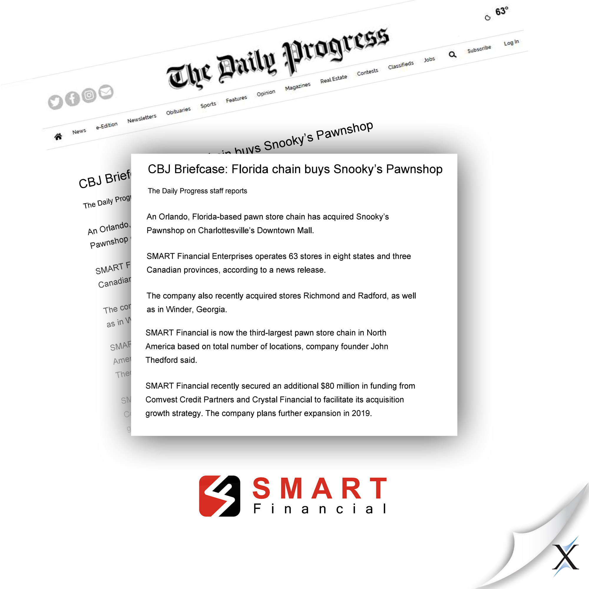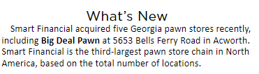 - Changed the public's perception of the pawn industry in communities where SMART Financial had local stores and operations