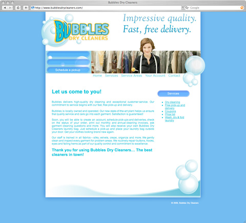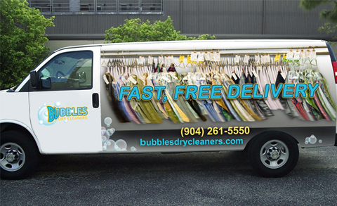 With big plans but no visual identity, Bubbles executives hired Axia Public Relations to brand the soon-to-be launched dry cleaning franchise. Axia created a complete corporate identity package, including a logo, tagline, Web site, letterhead, envelopes and business cards, as well as store-front and interior logo signage, direct-response mailers, print ads and more. And since free pickup and delivery was a huge part of the company’s business model, Axia also designed attention getting van graphics. With Axia on board, the franchise was able to successfully launch seven stores in its first few months.