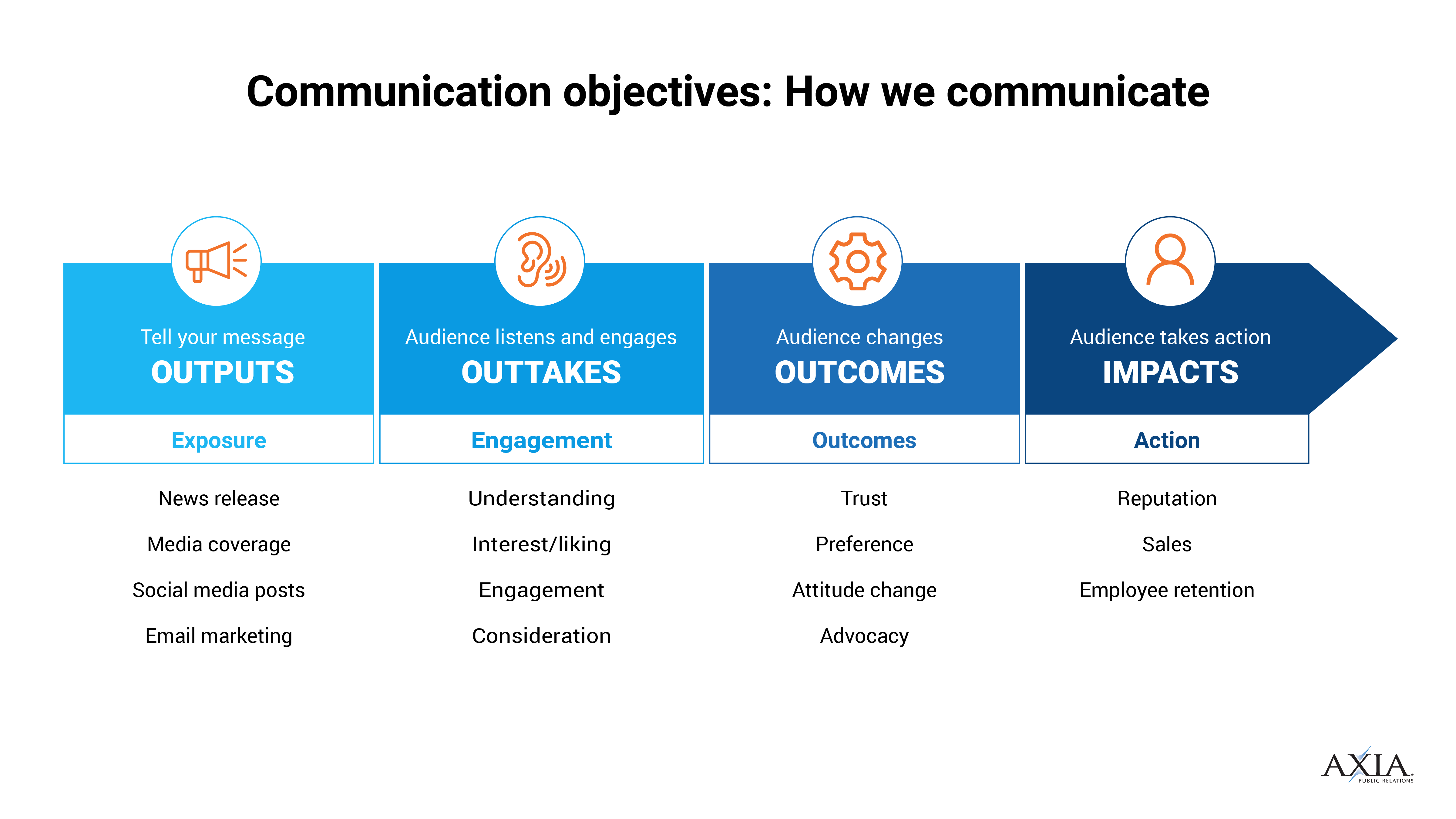 We provide a comprehensive breakdown of Axia’s PR measurement framework and appropriate metrics for measuring activity and results throughout your campaign.