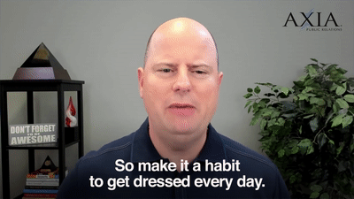 When you look good, you feel good. When you feel good, you're more likely to accomplish things. Make it a habit to get dressed everyday even though you may be working remote.