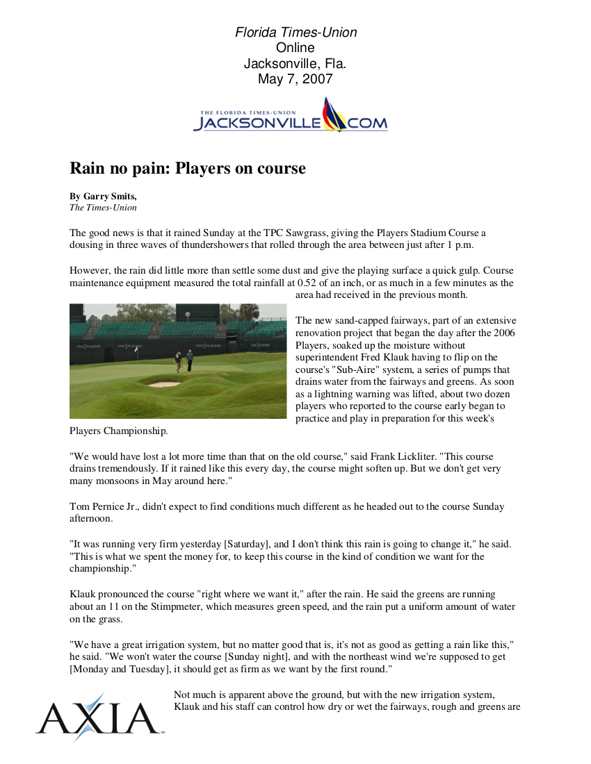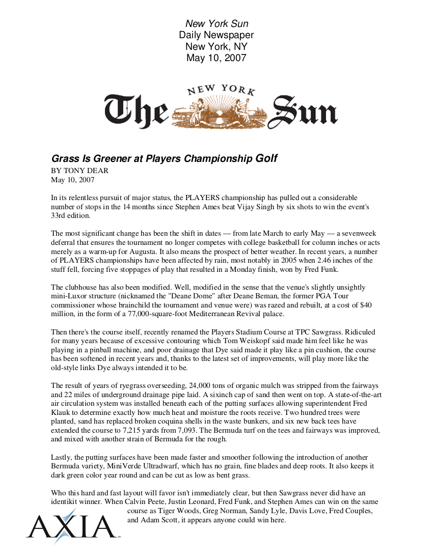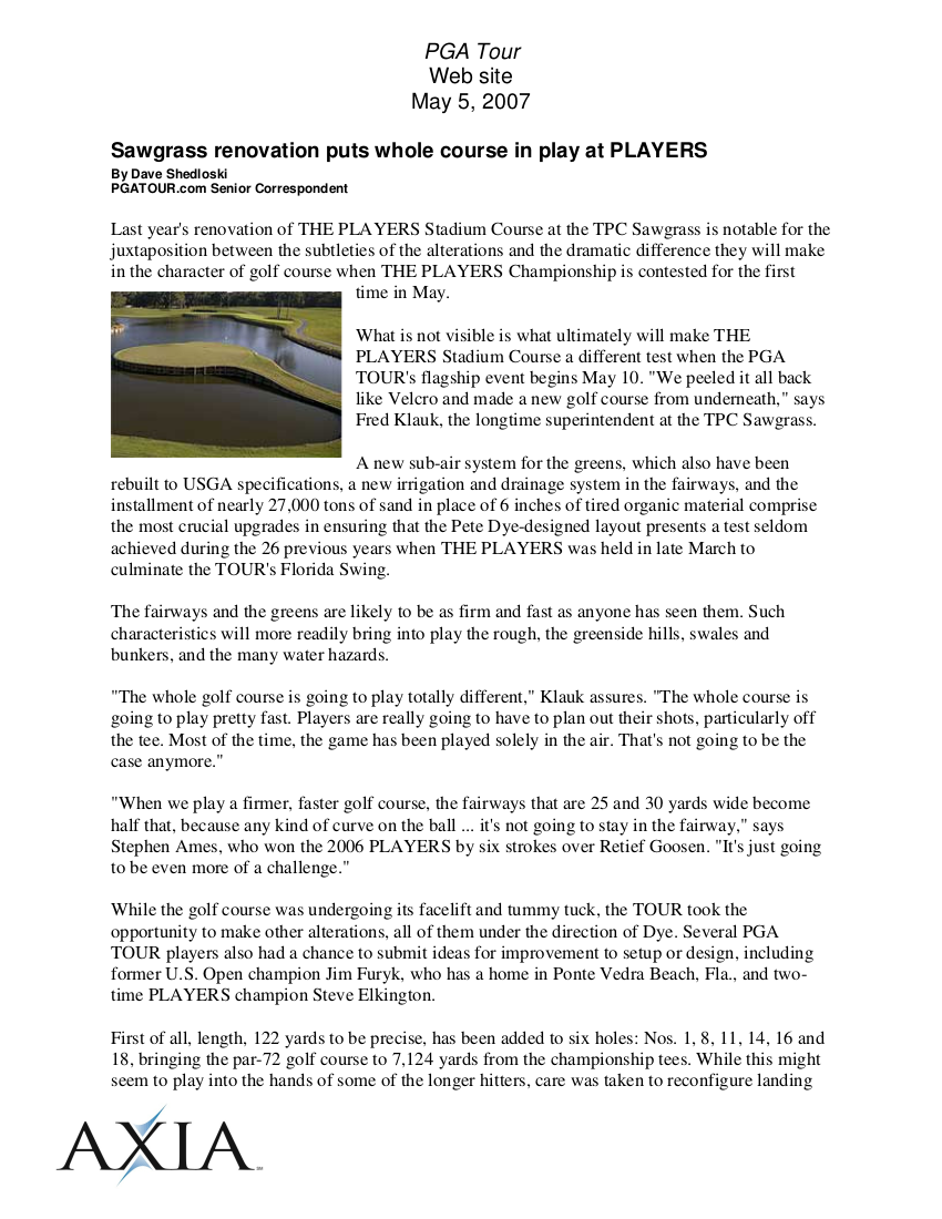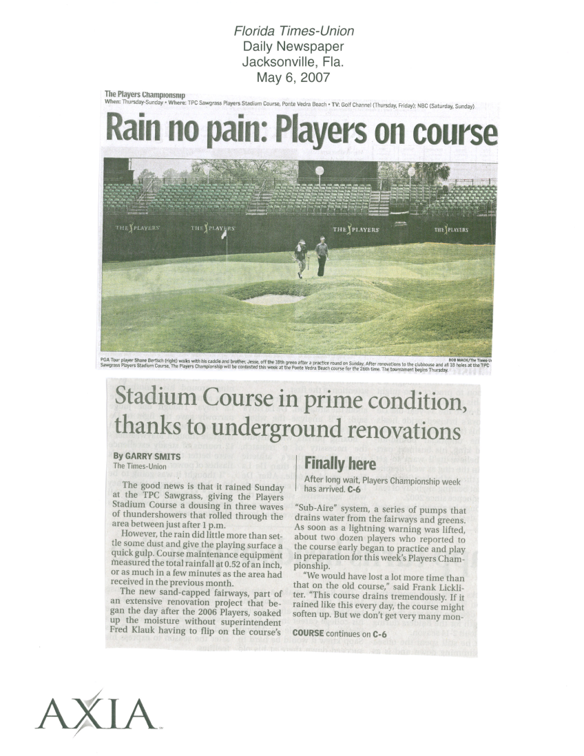 With a small budget and a timeframe tighter than the Sawgrass fairways, within 30 days Axia earned numerous on-air mentions by NBC Sports as well as earning media coverage in print, radio, TV and online, including Golf World, PGATour.com, ABC and NBC news affiliates, The New York Sun, and several more.