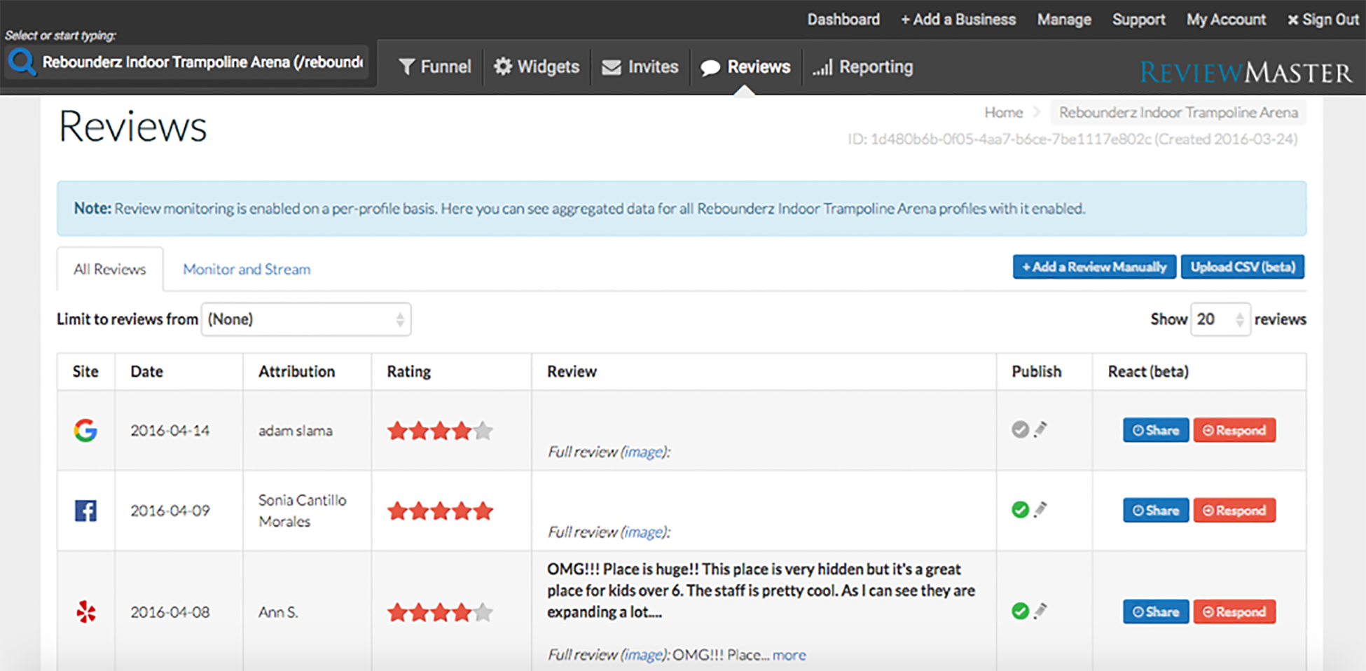 Quickly and easily monitor and manage your online reviews from one central location – the ReviewMaxer dashboard – so you can protect your reputation by turning good reviews into free advertising.